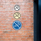 Our Signs ByLITA Circle No Smoking Graphic Door or Wall Sign can be attached to the door, wall or window of your home or business. The sign text and design work is laser engraved into sturdy plastic. Each sign comes with an adhesive foam backing, allowing them to be attached to any flat surface. Comes in multiple colors. Our caution warning sign for your Home, Business and Office Spaces.