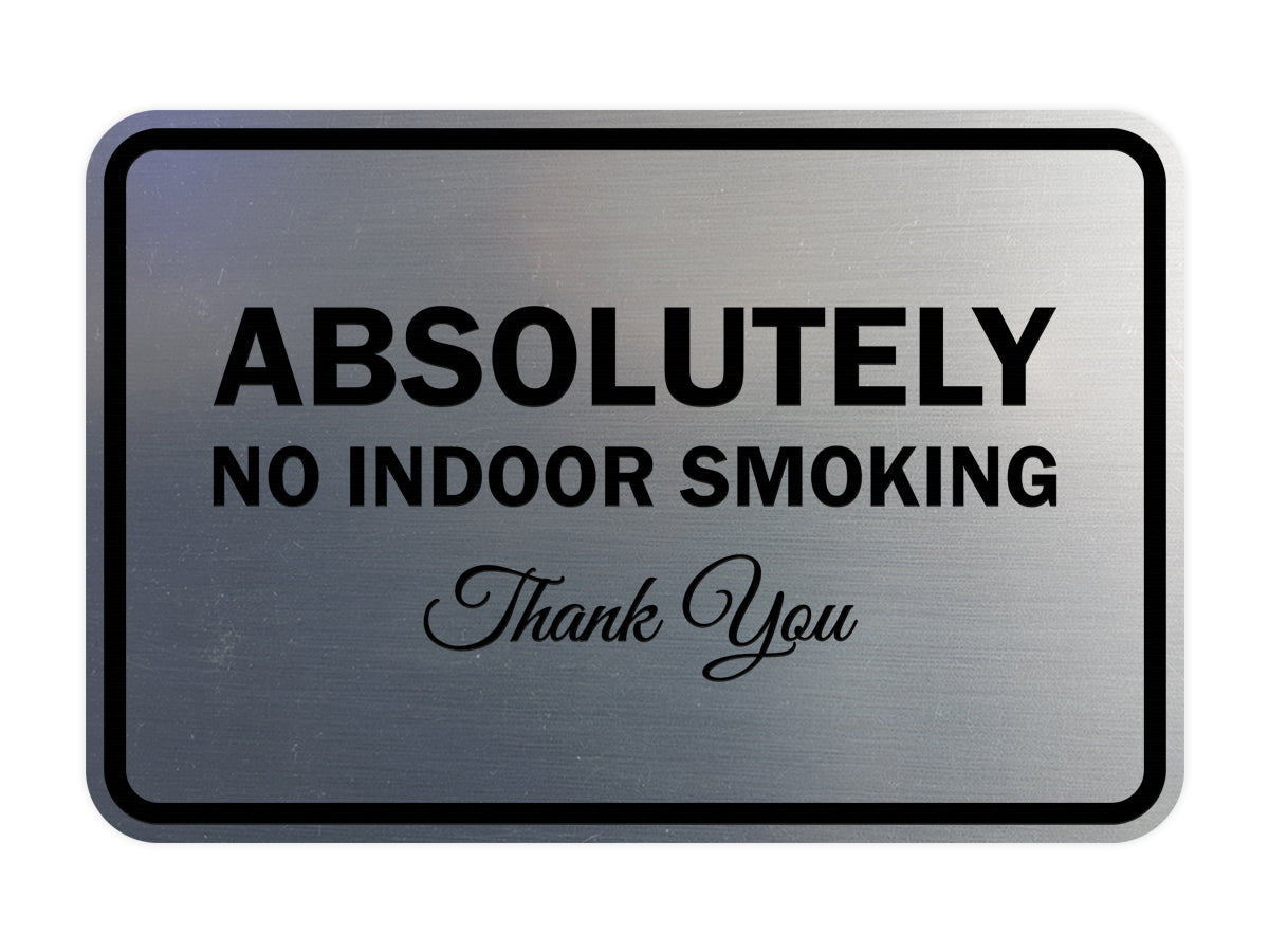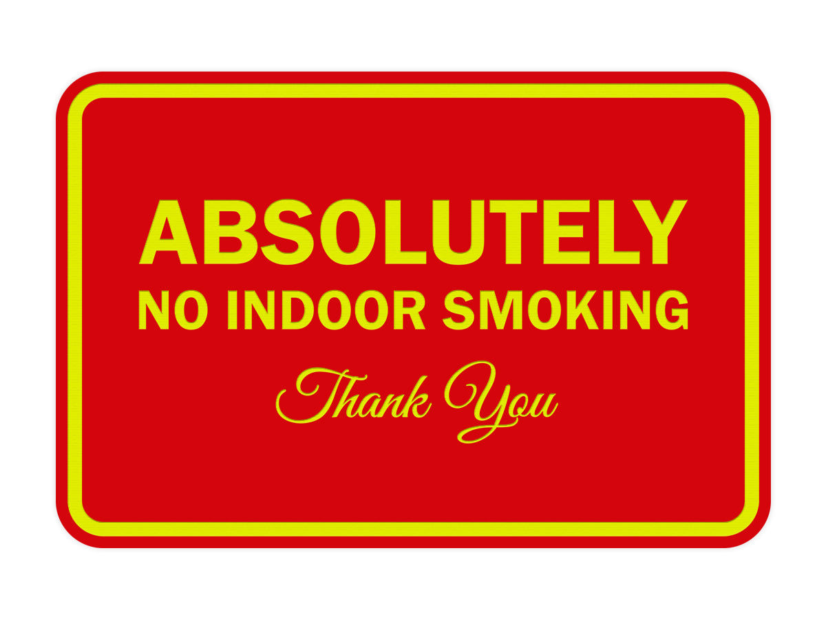 Signs ByLITA Classic Framed Absolutely No Indoor Smoking Thank You Door/Wall sign can be attached to the door, wall or window of your home or business. The sign has been laser engraved so the words are all etched into the plastic. Comes in multiple colors.