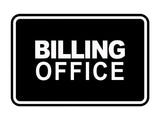 Our Signs ByLITA Classic Framed Billing Office Sign can be attached to the door, wall or window of your home or business. The sign text and design work is laser engraved into sturdy plastic. Each sign comes with an adhesive foam backing, allowing them to be attached to any flat surface. Comes in multiple colors. Our billing office signs are great for your home or business.