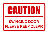 Our Caution Swinging Door Please Keep Clear Door/Wall sign can be attached to the door, wall or window of your home or business. The sign has been laser engraved so the words are all etched into the plastic. Comes in multiple colors.