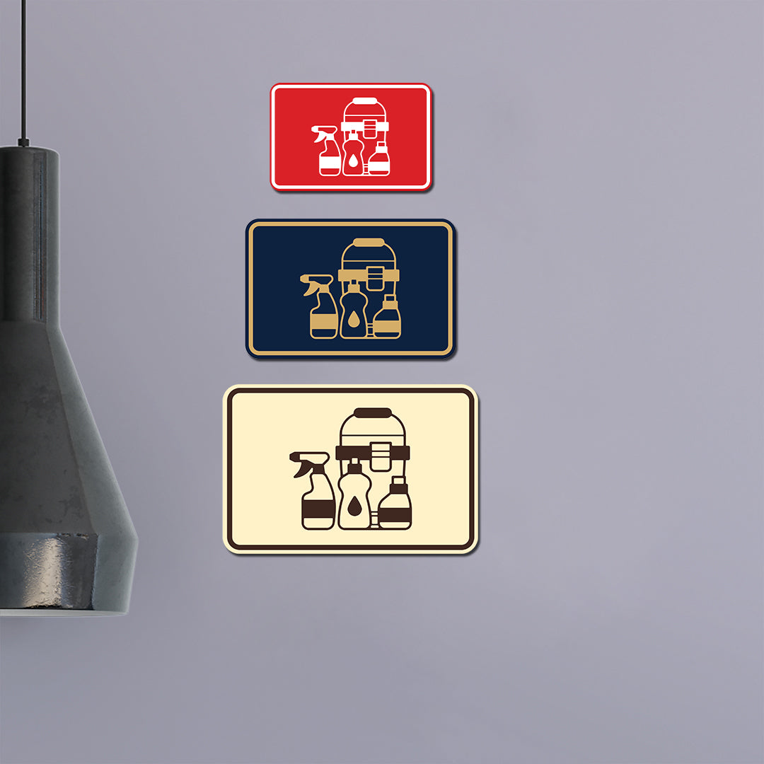 Our Signs ByLITA Classic Framed Cleaning Supplies Graphic Sign can be attached to the door, wall or window of your home or business. The sign text and design work is laser engraved into sturdy plastic. Each sign comes with an adhesive foam backing, allowing them to be attached to any flat surface. Comes in multiple colors. Our indoor graphic signs are great for your home or business.