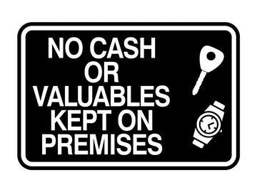 Signs ByLITA Classic Framed No Cash Or Valuables Kept On Premises Wall or Door Sign