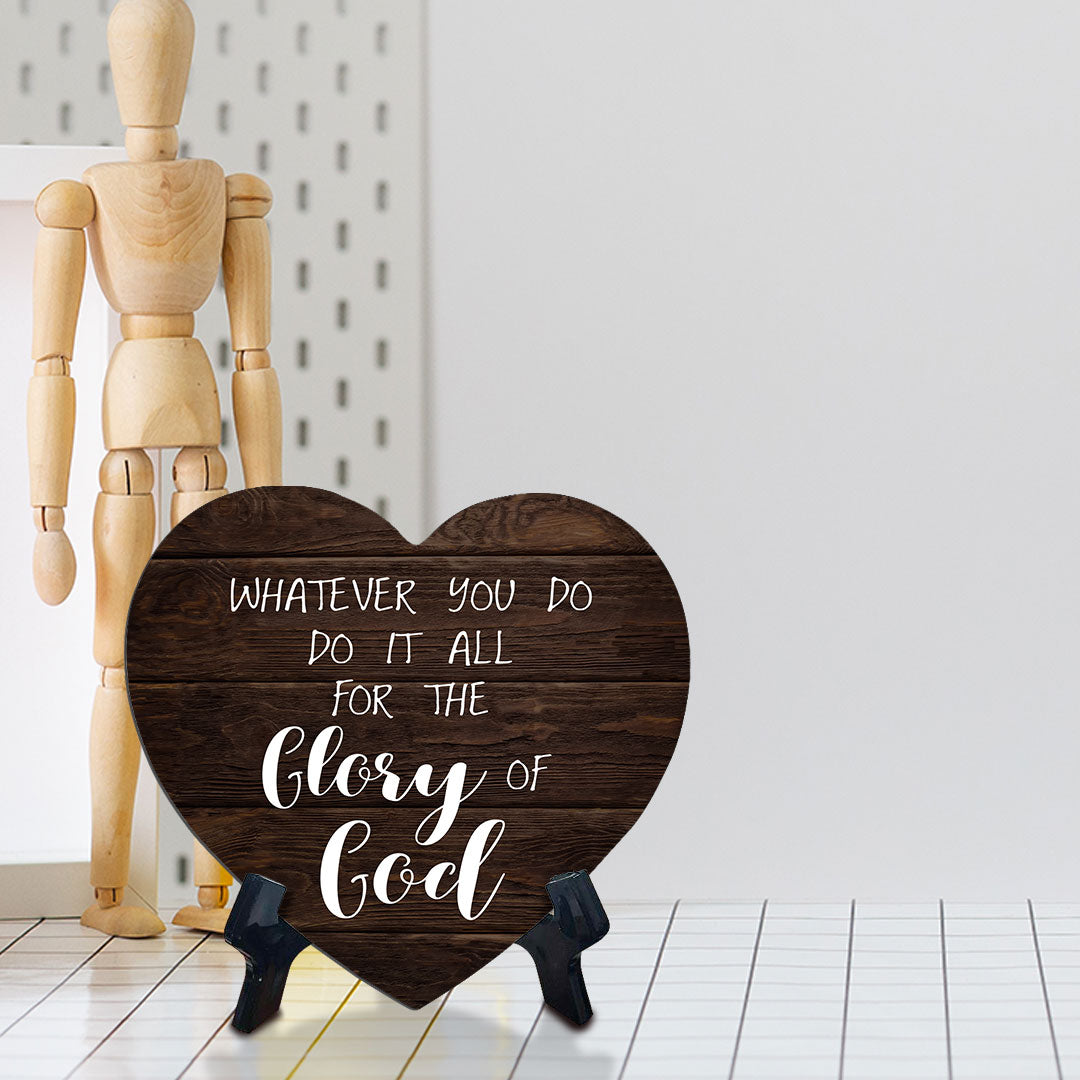 Whatever You Do Do It All For The Glory Of God Heart Table Sign with Acrylic Stand (6x5")