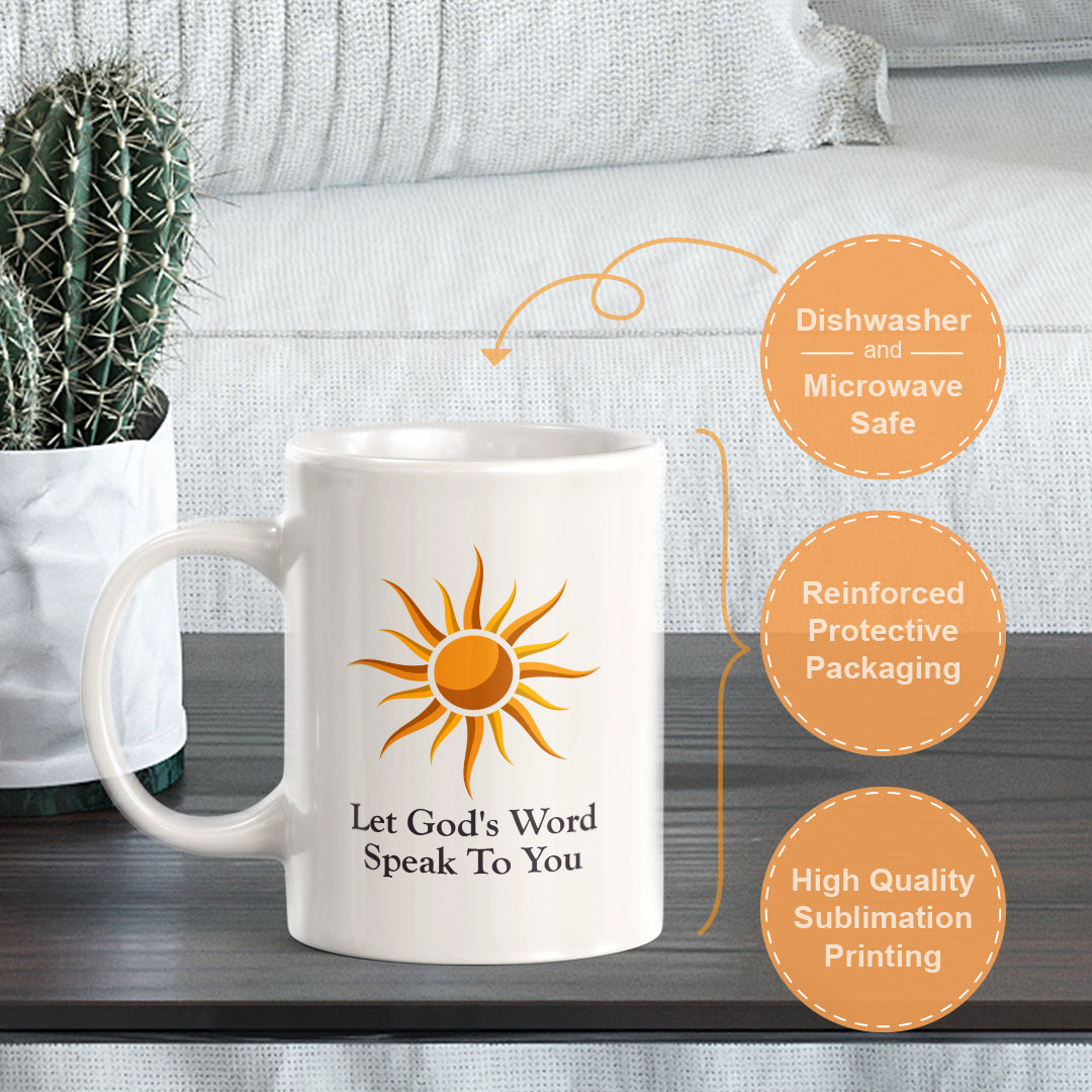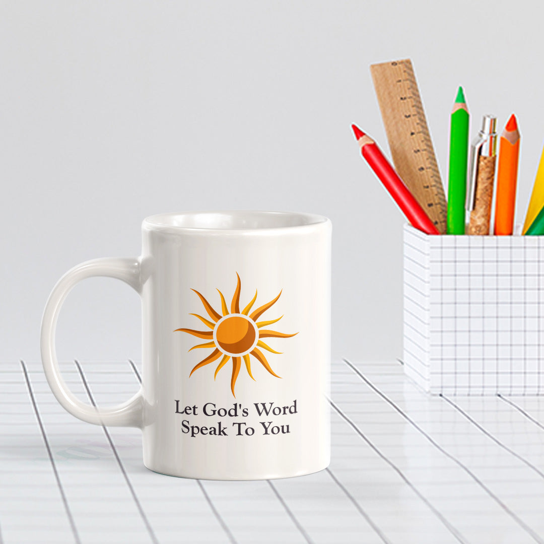 Let God's Word Speak To You Coffee Mug. This mug is great for your home, office or workspace. Perfect gift for your friends and family, be sure to check out our other religious sayings mug designs!