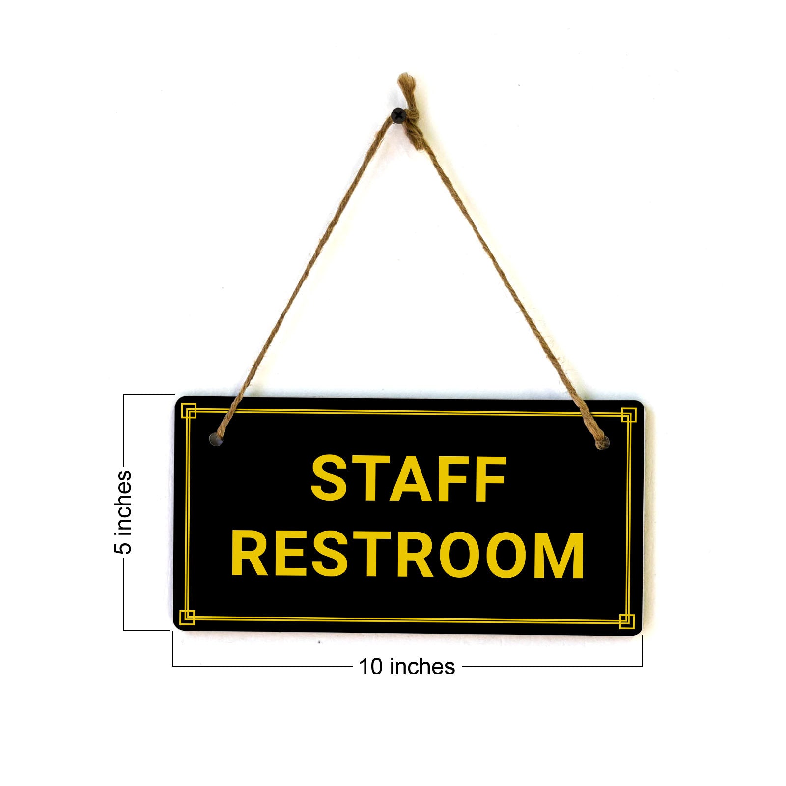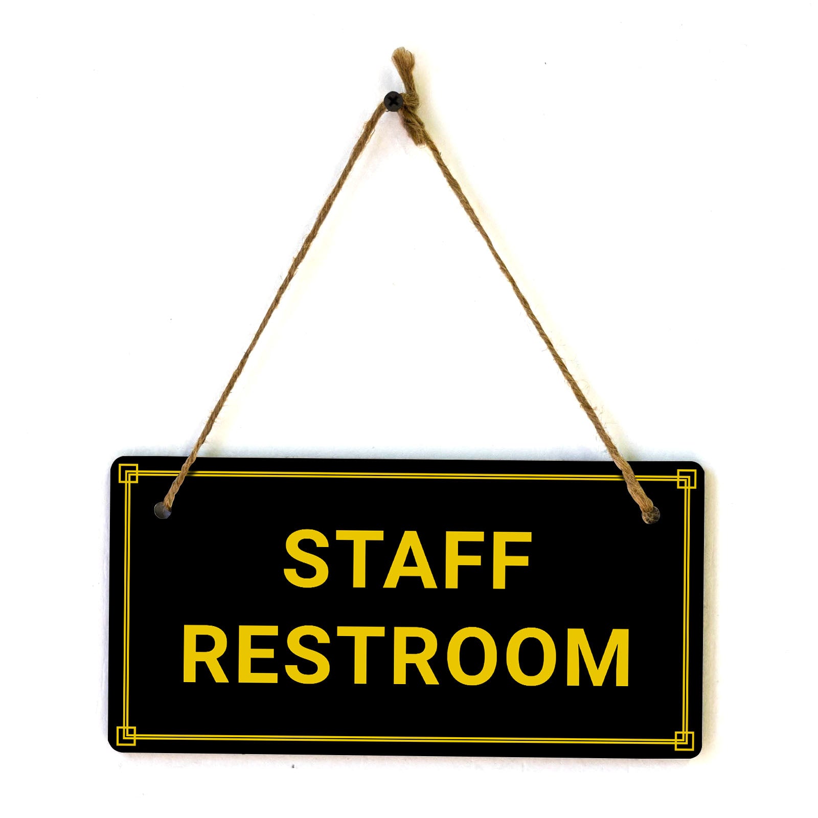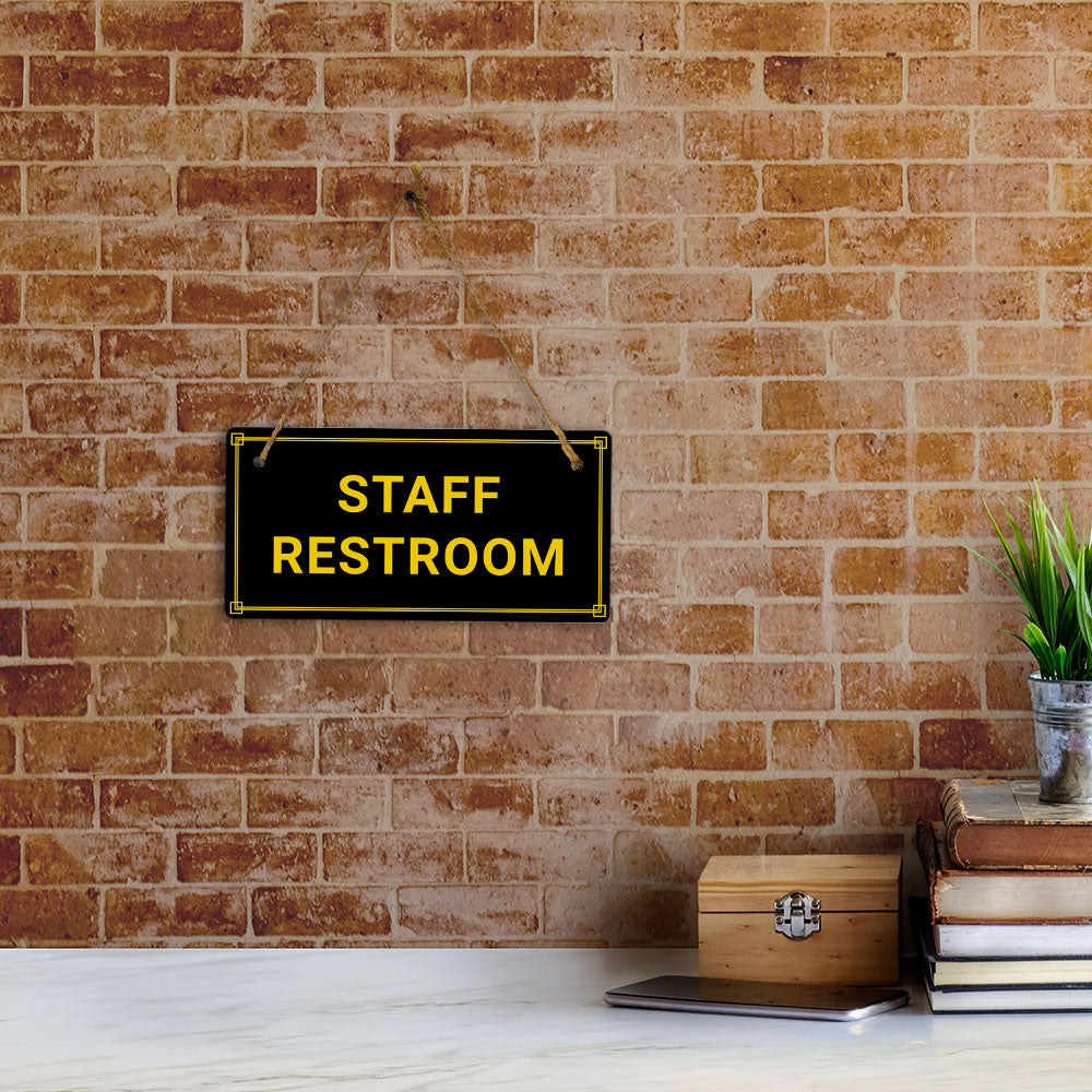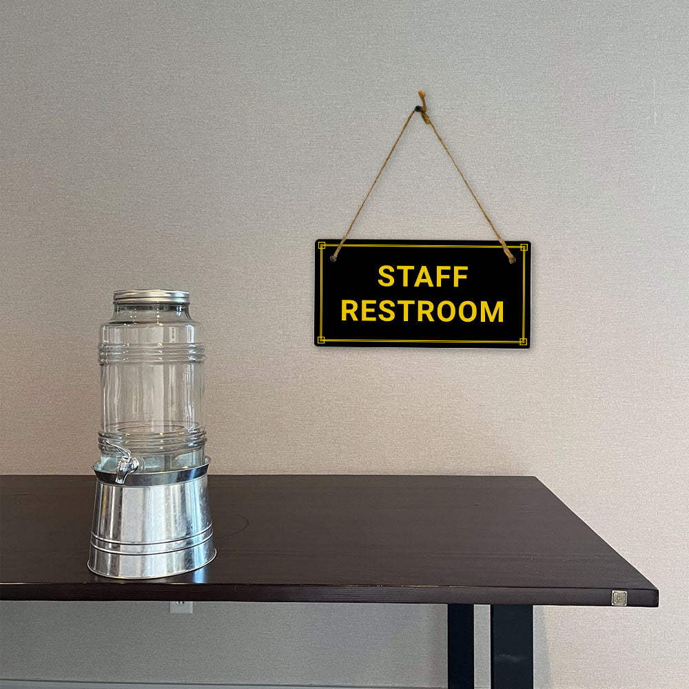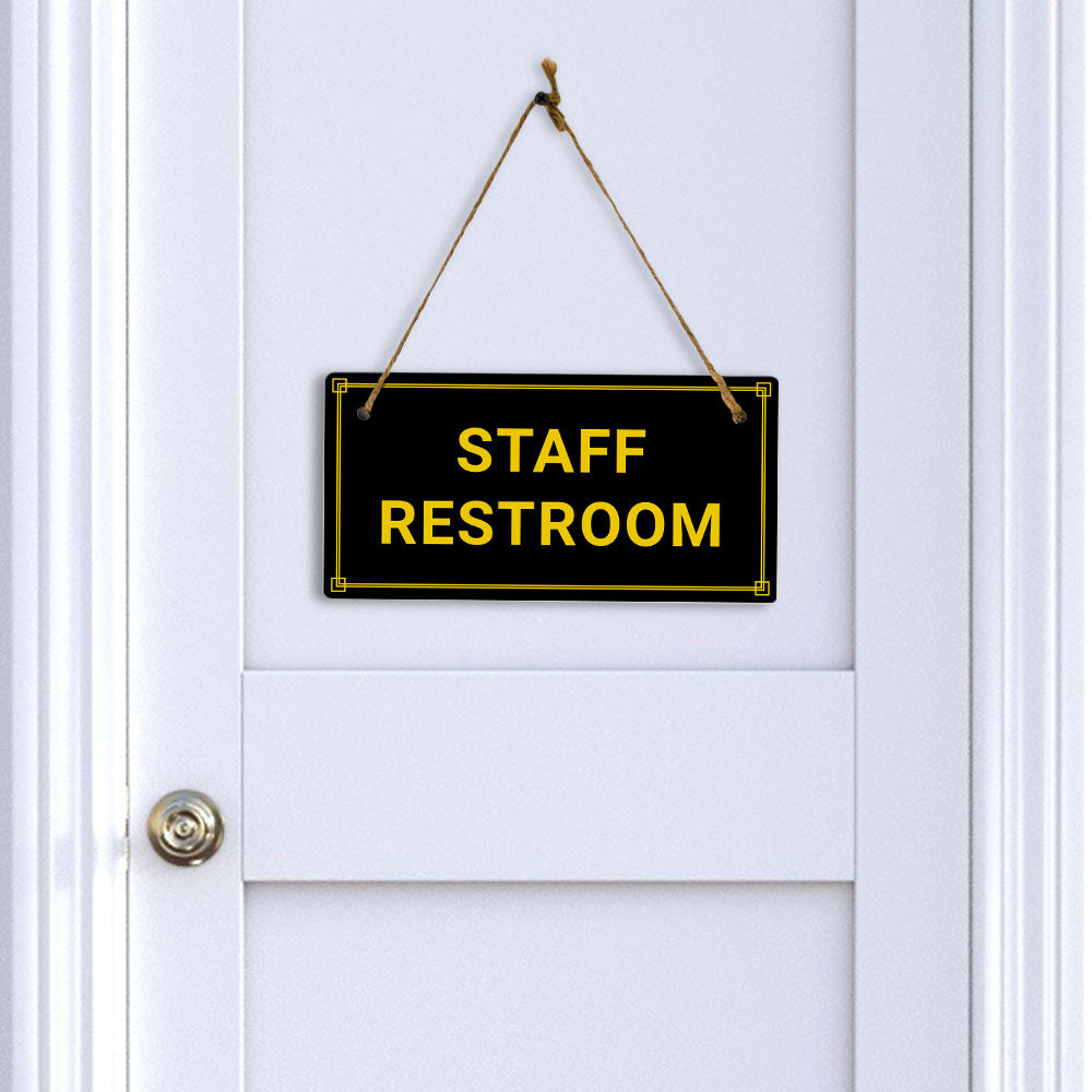 Introducing our versatile and stylish Staff Restroom, the perfect blend of style and sophistication to elevate your home or workplace. Our 5x10 Hanging Sign range is the perfect choice for your home, workplace or business. Each sign is attached with rustic twine, providing a charming and versatile accent for any space. Our curated designs effortlessly complement a variety of styles, from rustic farmhouse or Modern Chic, to simple and functional options. Choose from our diverse range of designs to personalize your space. Whether it's a warm welcome at the entrance, a motivational quote for your workspace, or a playful touch for the kids' room, our Hanging Wall or Door Signs are the perfect way to express your unique style.