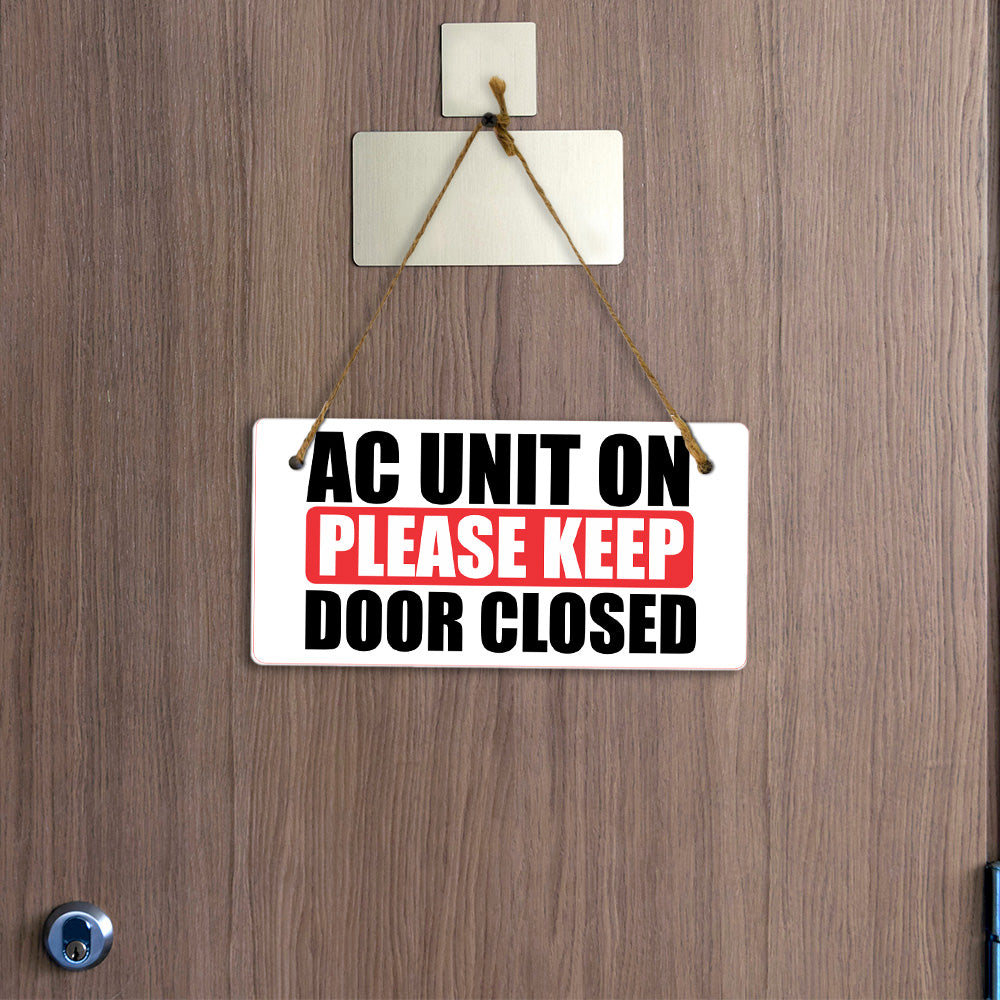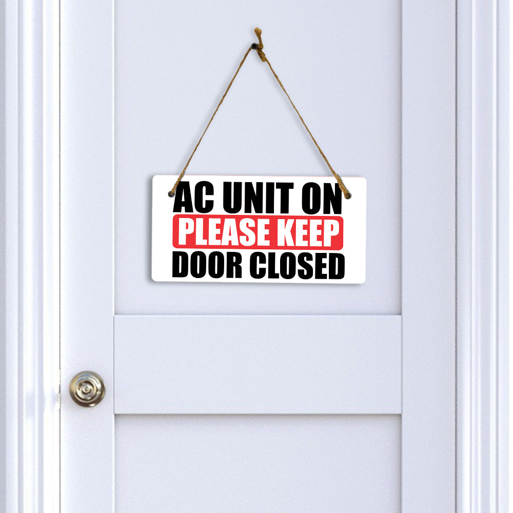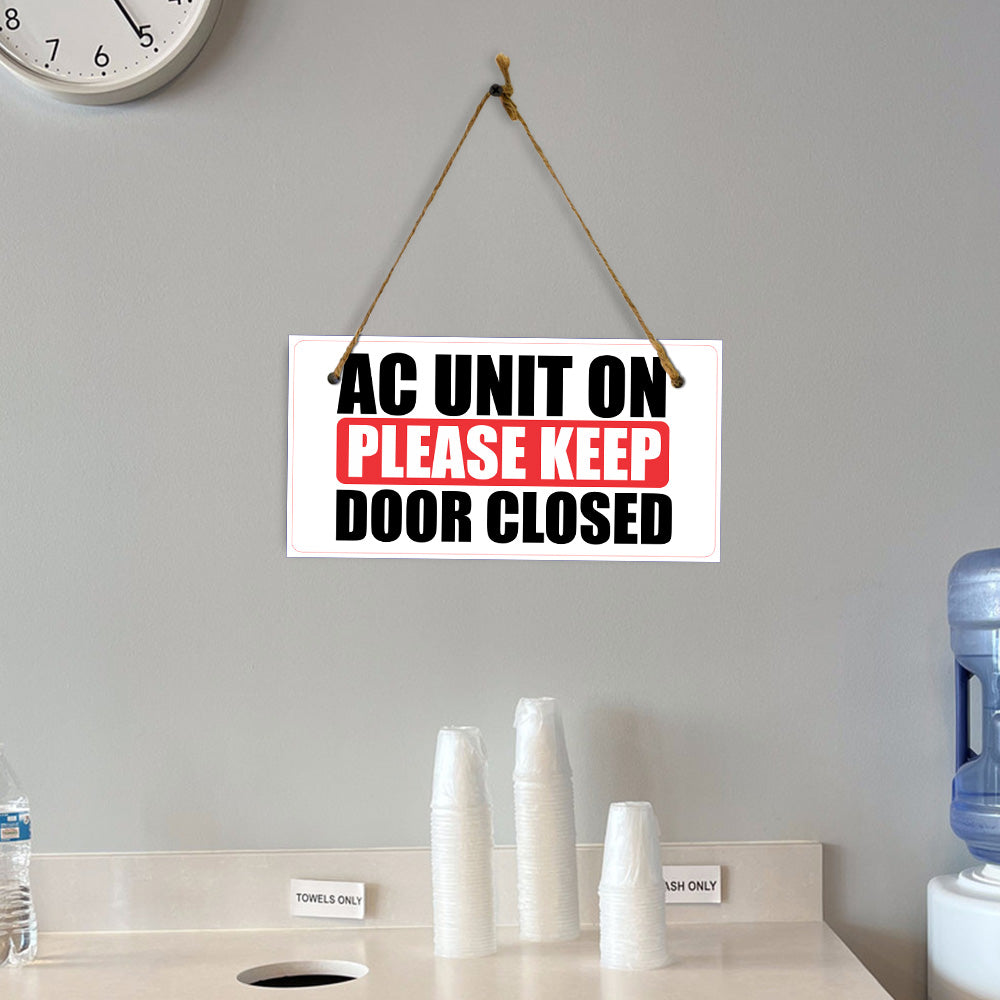AC Unit On Please Keep Door Closed 5x10 Hanging Plus Wall or Door Sign