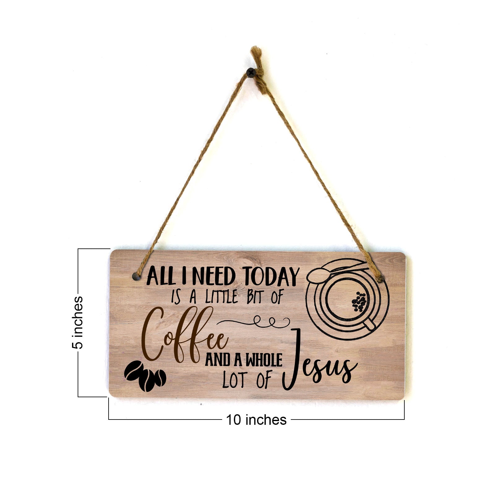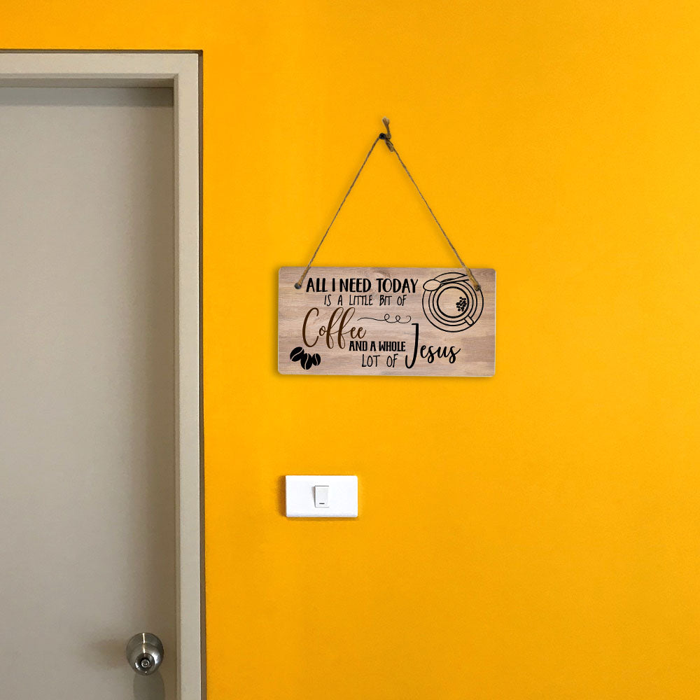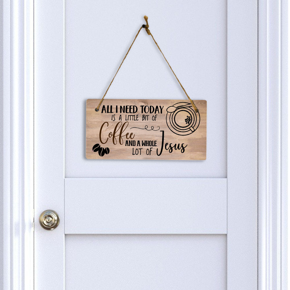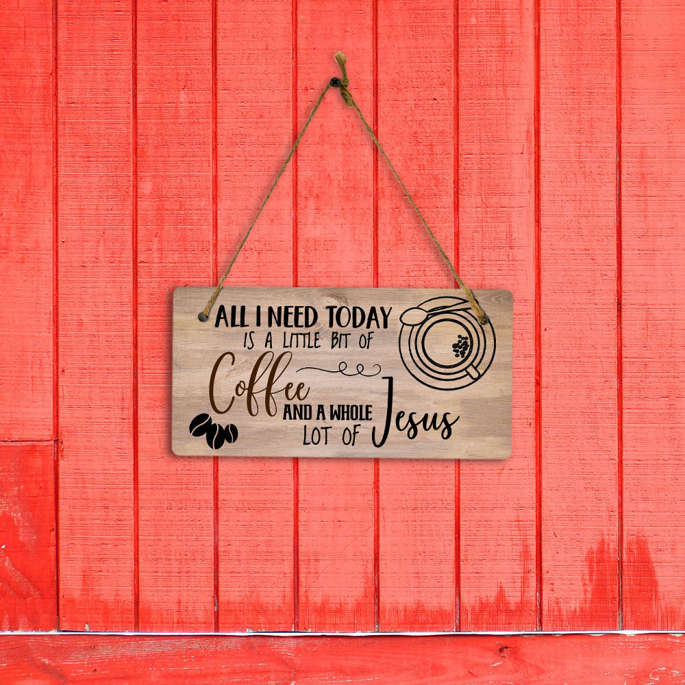 All I Need Today Is A Little Bit Of Coffee And A Whole Lot Of Jesus 5x10 Hanging Plus Wall or Door Sign