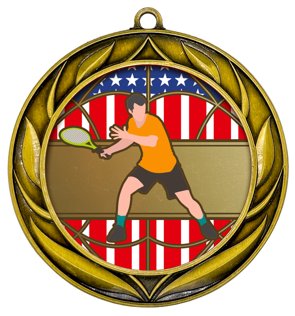 All Quality Tennis Wreath Design Medal - 1st, 2nd, 3rd Place