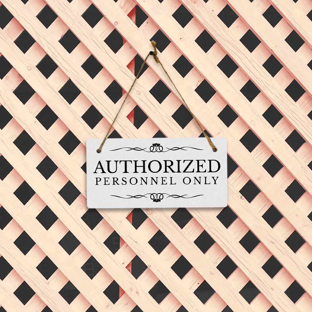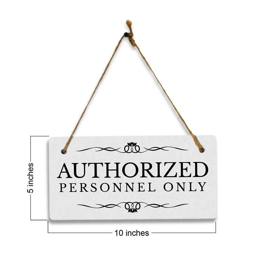 Introducing our versatile and stylish Authorized Personnel Only, the perfect blend of style and sophistication to elevate your home or workplace. Our 5x10 Hanging Sign range is the perfect choice for your home, workplace or business. Each sign is attached with rustic twine, providing a charming and versatile accent for any space. Our curated designs effortlessly complement a variety of styles, from rustic farmhouse or Modern Chic, to simple and functional options. Choose from our diverse range of designs to personalize your space. Whether it's a warm welcome at the entrance, a motivational quote for your workspace, or a playful touch for the kids' room, our Hanging Wall or Door Signs are the perfect way to express your unique style.