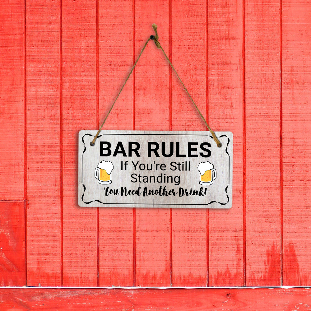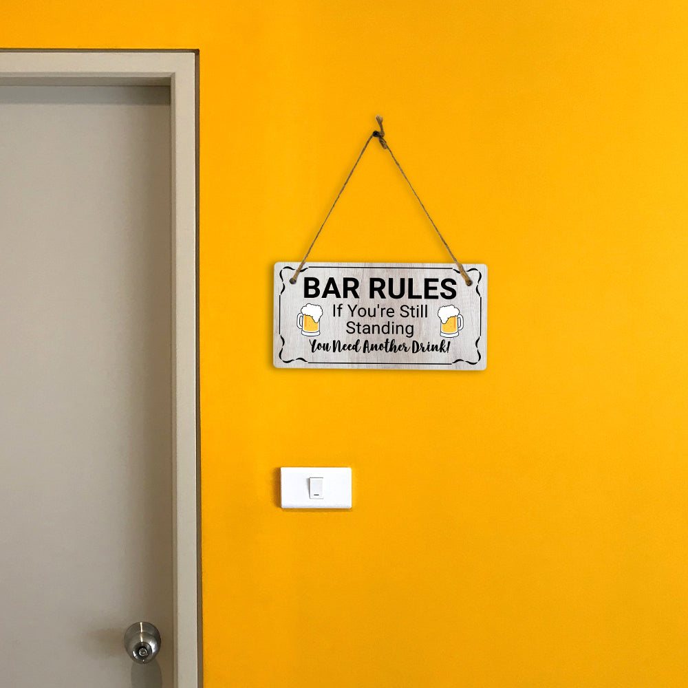 Bar Rules If You're Still Standing You Need Another Drink! 5x10 Hanging Plus Wall or Door Sign