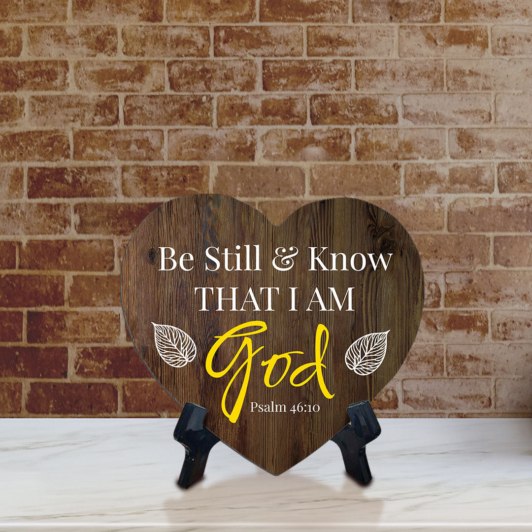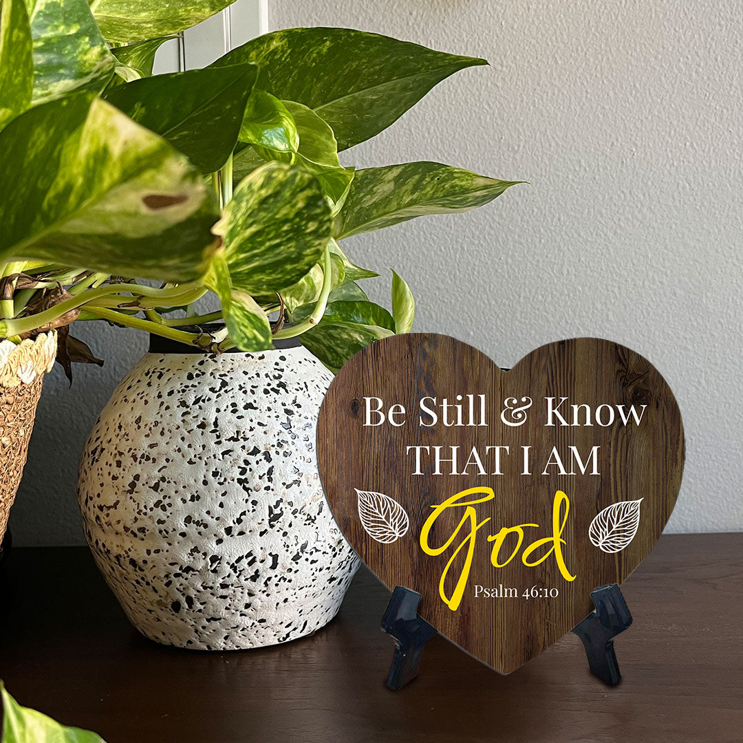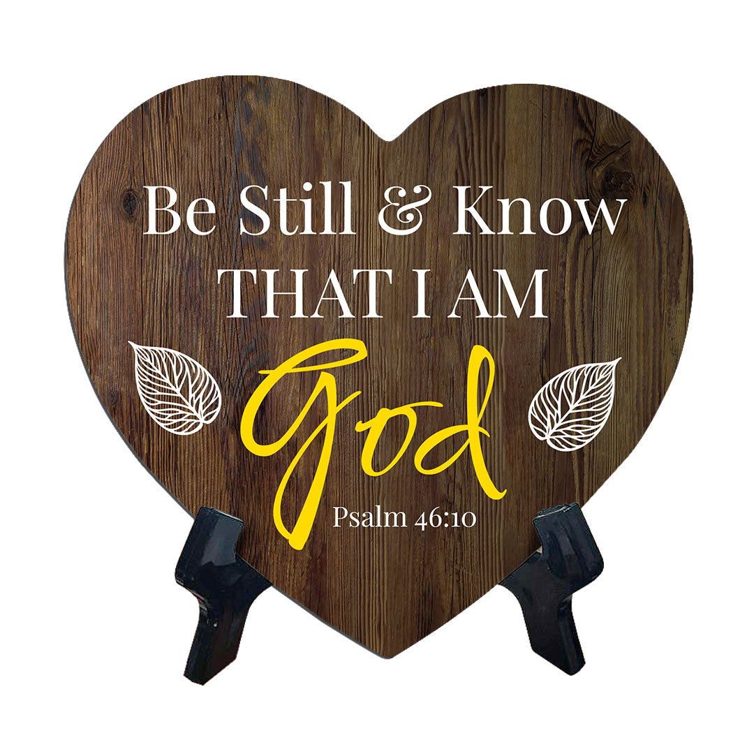 Be Still & Know That I Am God. Psalm 46:10 Heart Table Sign with Acrylic Stand (6x5")