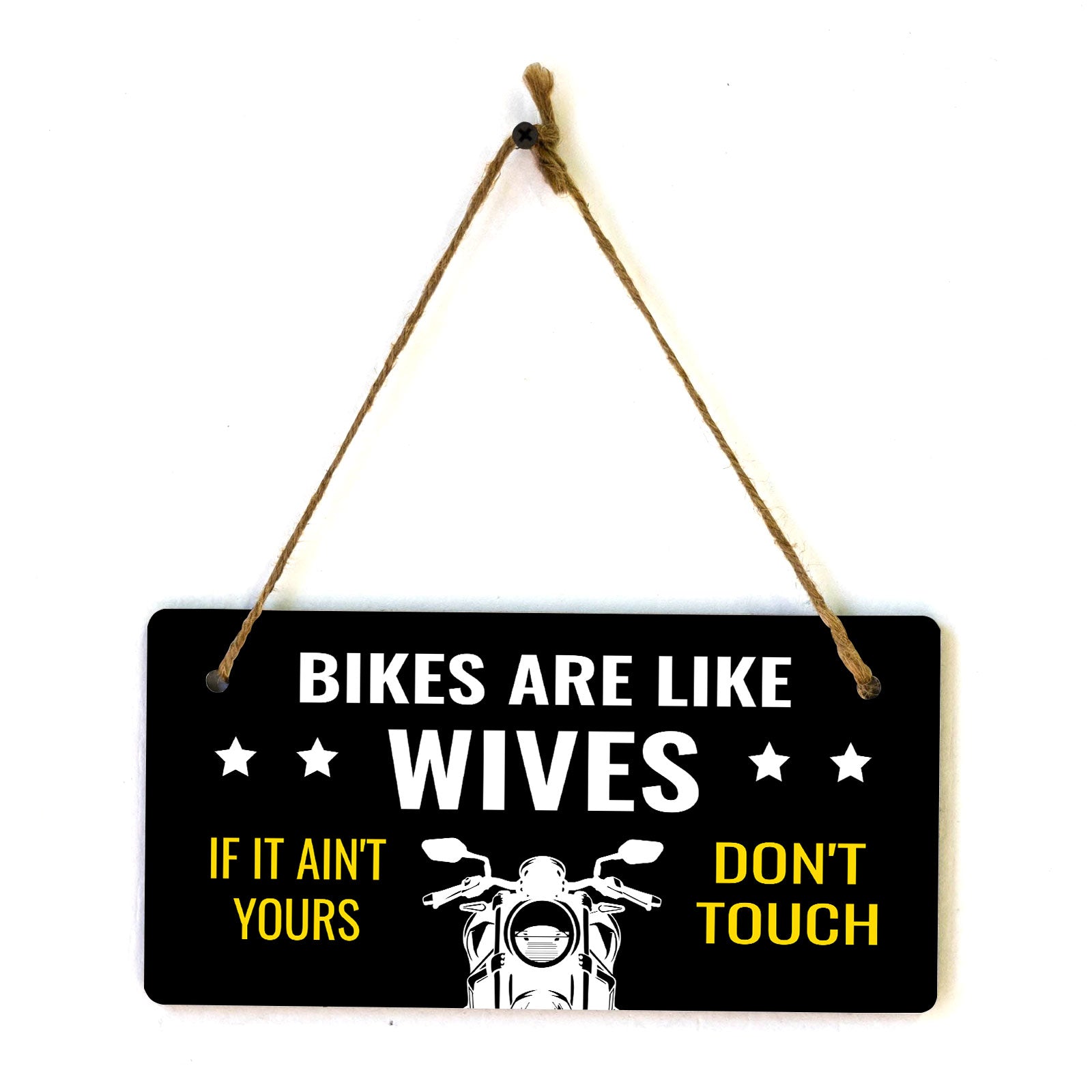 Bikes Are Like Wives If It Ain't Yours Don't Touch 5" x 10" Hanging Wall or Door Sign