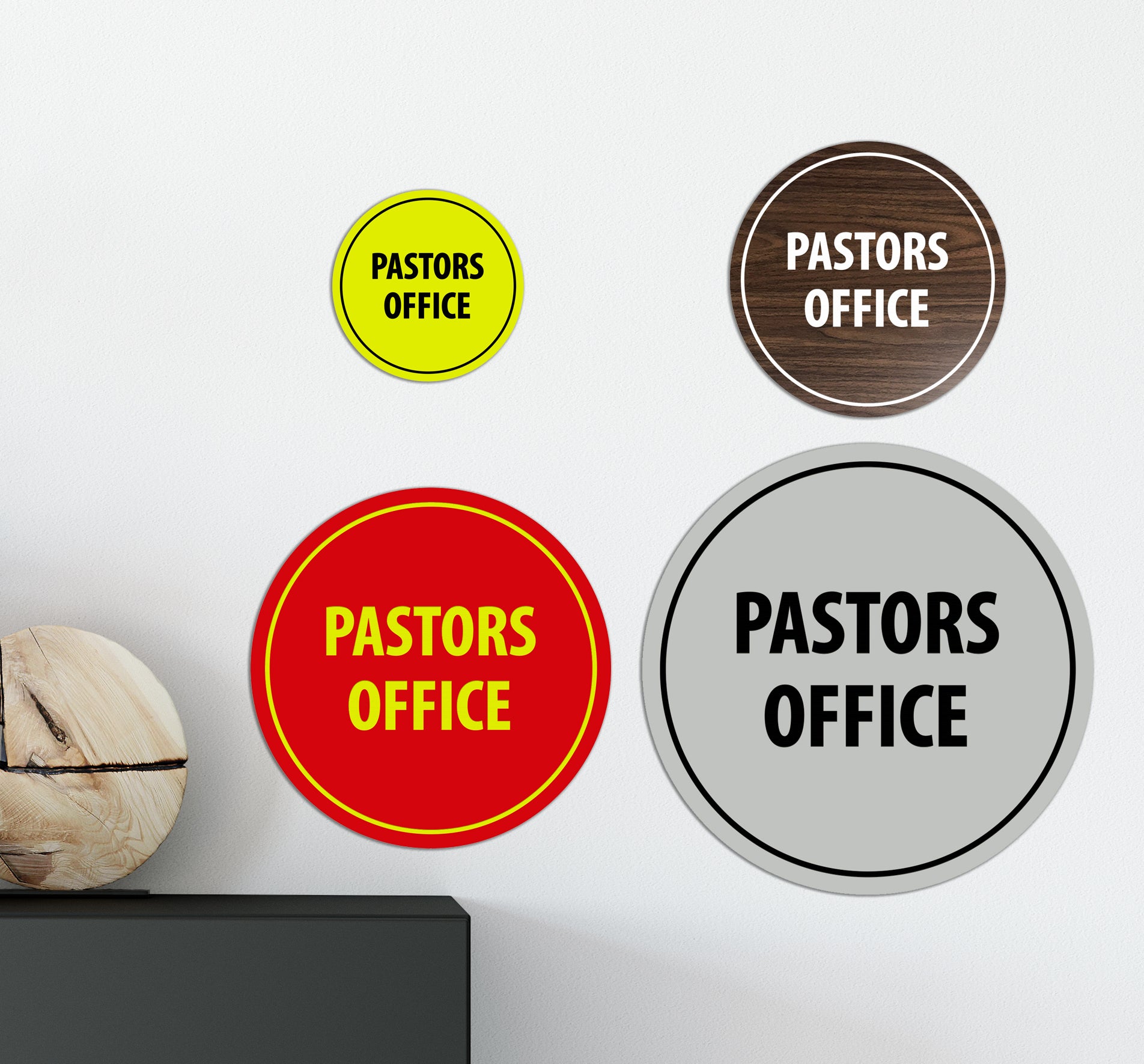 Our Signs ByLITA Circle Pastors Office Door/Wall sign can be attached to the door, wall or window of your home or business. The sign has been laser engraved so the words are all etched into the plastic. Comes in multiple colors.