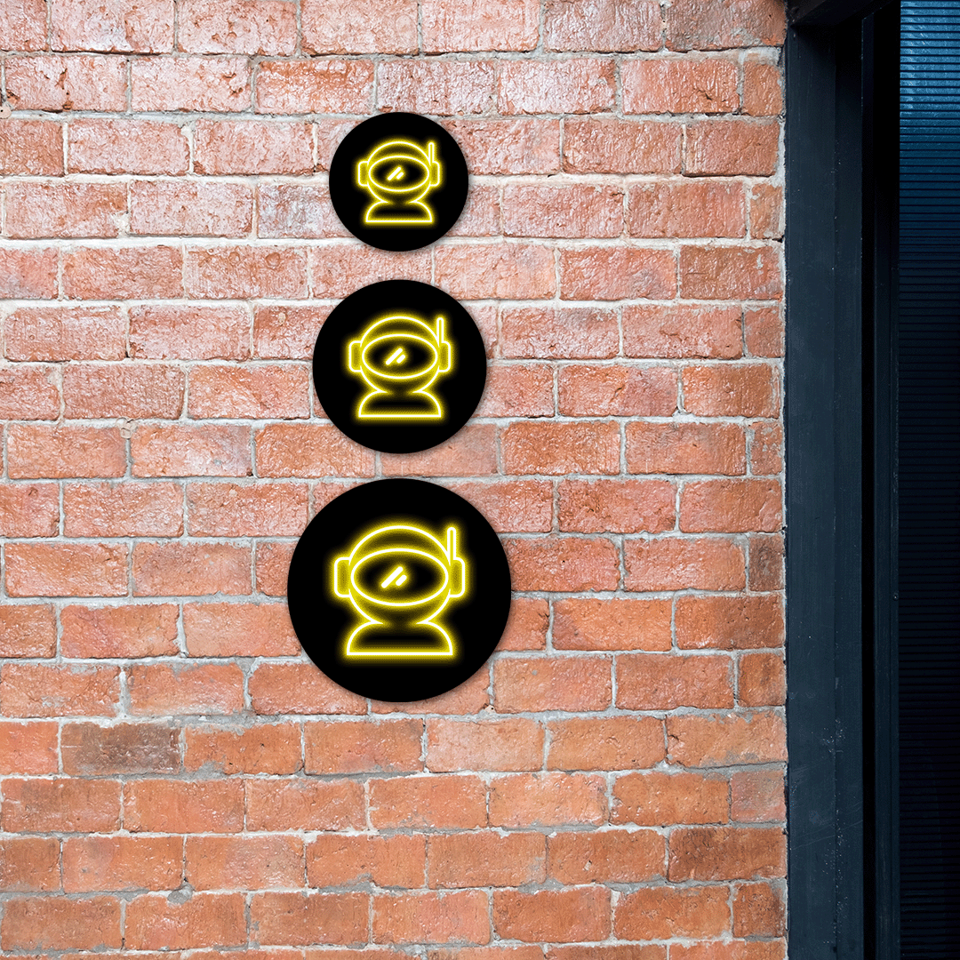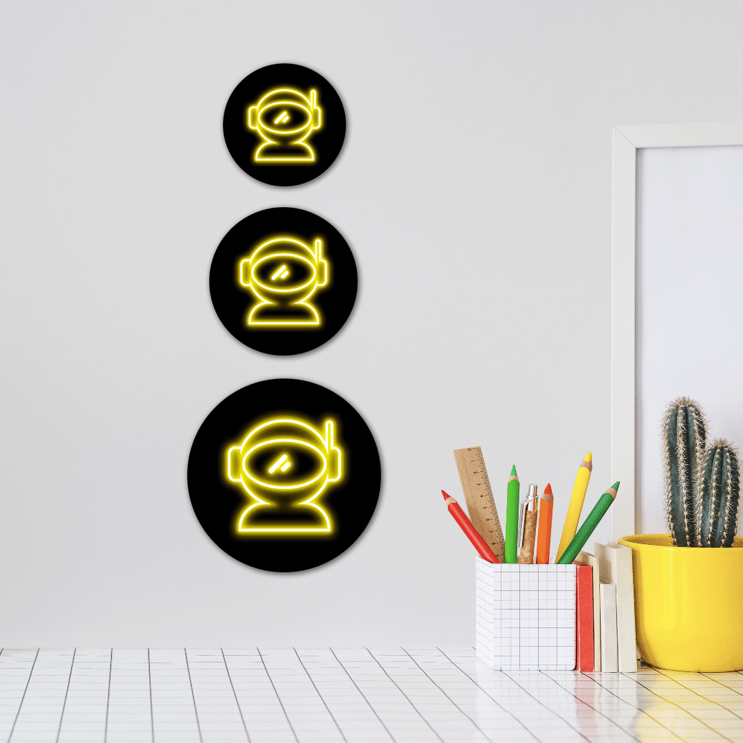 Circle Plus Astronaut Neon Graphic Style Wall or Door Sign