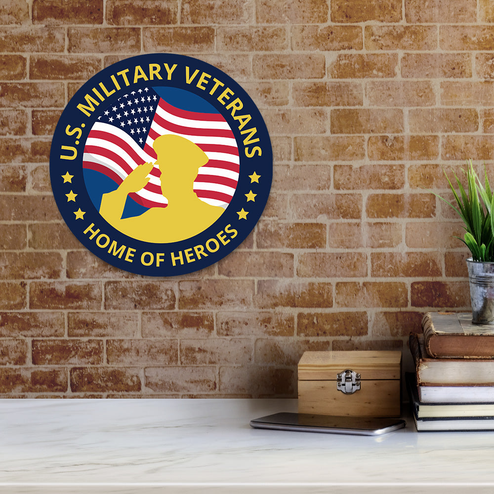 Circle Plus U.S. Military Veterans: Home of Heroes Door or Wall Sign Honor Veterans with Military Signs