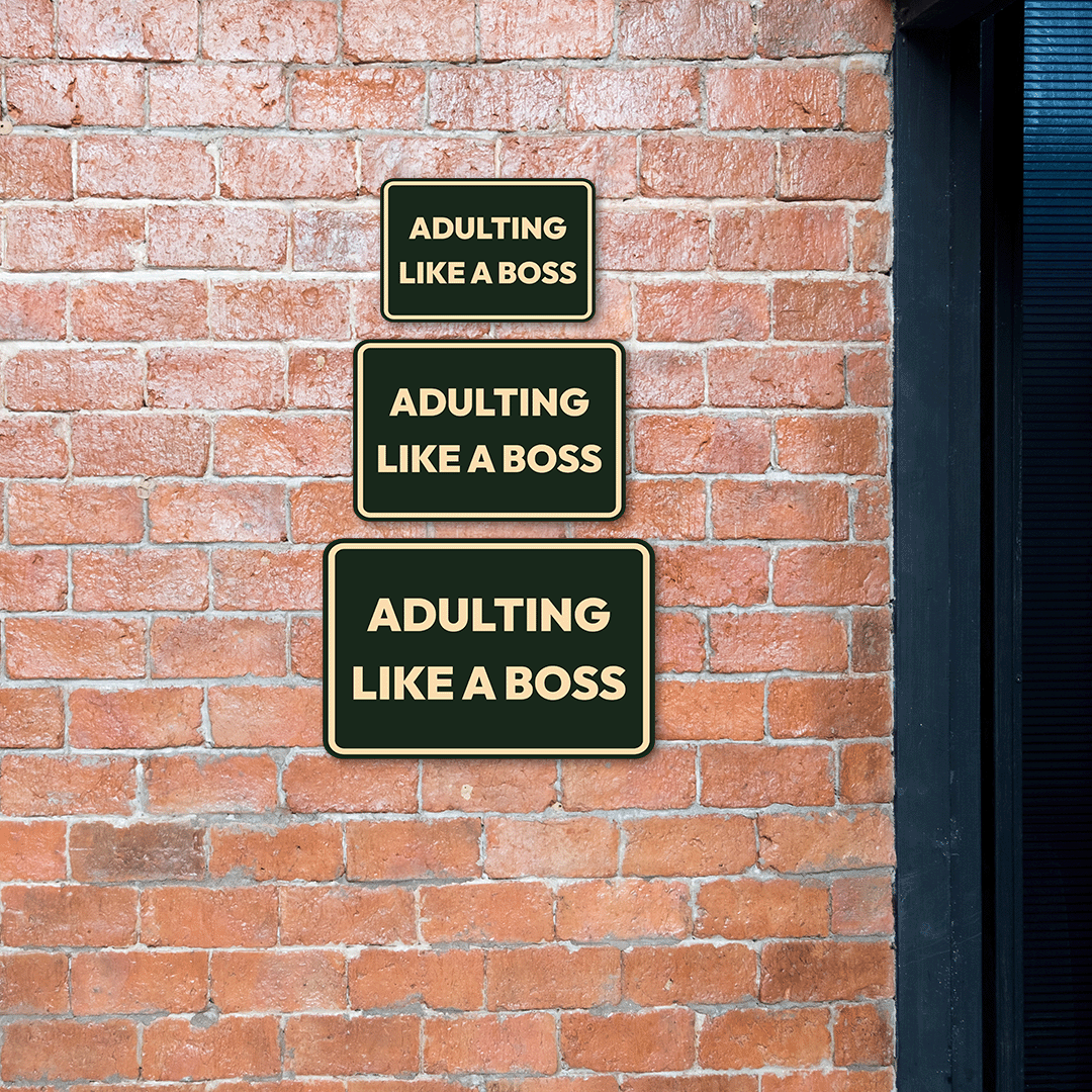 Elevate your business or home environment with Signs ByLITA's premium signs. Our Classic Framed Plus Adulting Like A Boss Wall or Door Sign is designed to enhance your workspace with style, while sending a clear message. These signs feature vivid sublimation printing that ensures clear and lasting colors, making a powerful visual impact. Installation is a breeze with double-sided adhesive foam tape, providing a secure hold without surface damage. Crafted from durable reinforced plastic, our Classic Framed Plus Adulting Like A Boss Wall or Door Sign is built to withstand daily wear and environmental conditions, eliminating the need for frequent replacements.These versatile signs find applications in various settings, from office doors and meeting rooms to displaying essential information or adding a touch of sophistication to your home decor. Signs ByLITA are the ideal choice for corporate offices, medical facilities, schools, and more. Our Adulting Like A Boss Sign offers a practical and stylish solution to elevate your workspace. Invest in these signs today to make a lasting impression, enhance professionalism, safety and security and transform your workspace into a welcoming and professional environment.