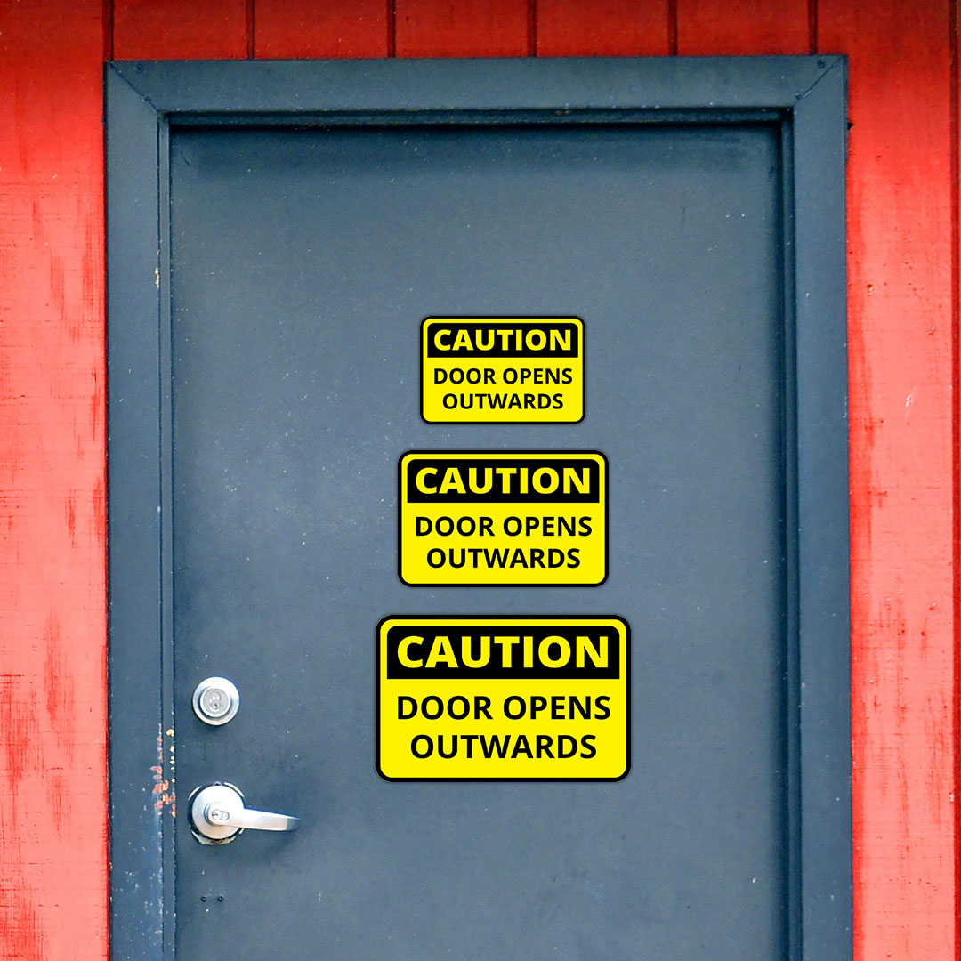 Classic Framed Plus Caution Door Opens Outwards Wall or Door Sign