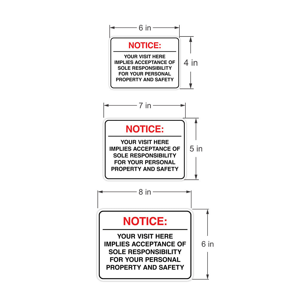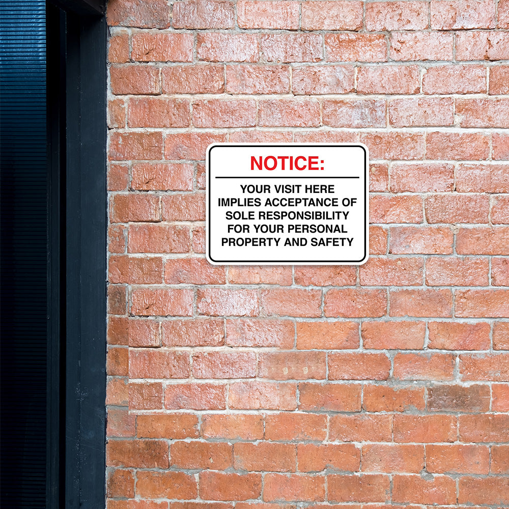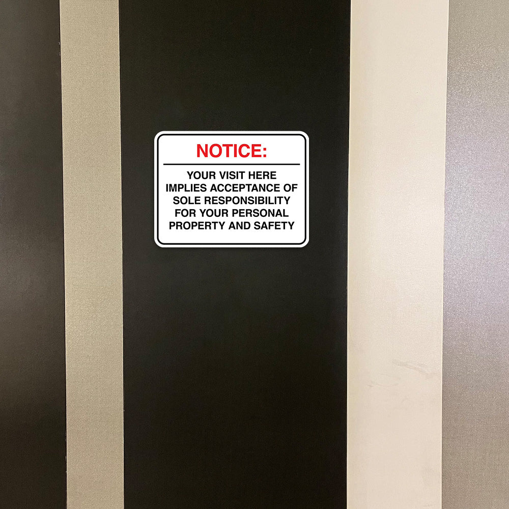 Classic Framed Plus Notice: Your visit here implies acceptance of sole responsibility for your personal property and safety Wall or Door Sign