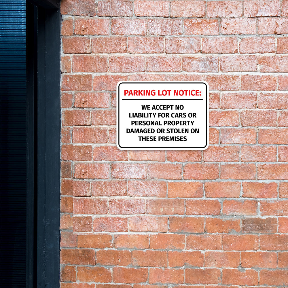 Classic Framed Plus Parking Lot Notice: We Accept No Liability For Cars or Personal Property Damaged or Stolen On These Premises Wall or Door Sign