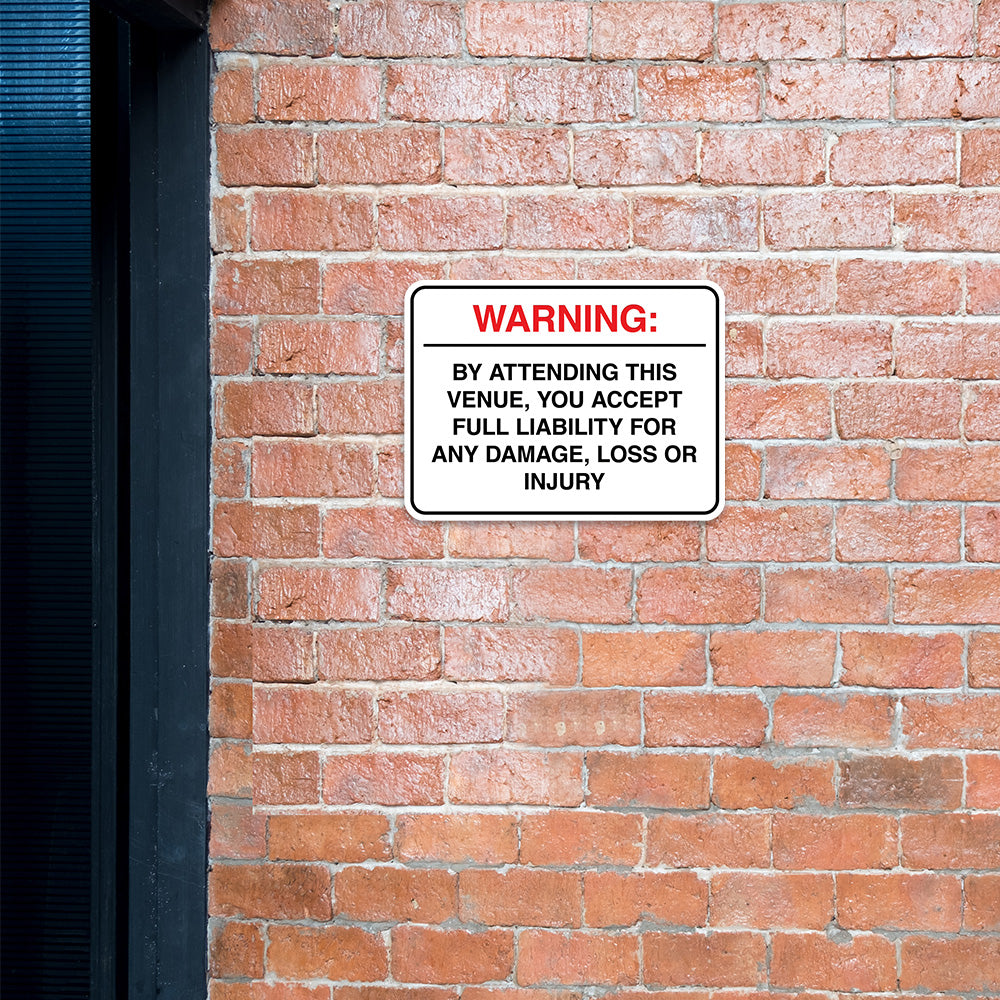 Elevate your business or home environment with Signs ByLITA's premium signs. Our Classic Framed Plus Warning: By Attending This Venue, You Accept Full Liability for Any Damage, Loss or Injury Wall or Door Sign is designed to enhance your workspace with style, while sending a clear message. These signs feature vivid sublimation printing that ensures clear and lasting colors, making a powerful visual impact. Installation is a breeze with double-sided adhesive foam tape, providing a secure hold without surface damage. Crafted from durable reinforced plastic, our Classic Framed Plus Warning: By Attending This Venue, You Accept Full Liability for Any Damage, Loss or Injury Wall or Door Sign is built to withstand daily wear and environmental conditions, eliminating the need for frequent replacements. These versatile signs find applications in various settings, from office doors and meeting rooms to displaying essential information or adding a touch of sophistication to your home decor. Signs ByLITA are the ideal choice for corporate offices, medical facilities, schools, and more. Our Warning: By Attending This Venue, You Accept Full Liability for Any Damage, Loss or Injury Sign offers a practical and stylish solution to elevate your workspace. Invest in these signs today to make a lasting impression, enhance professionalism, safety and security and transform your workspace into a welcoming and professional environment.