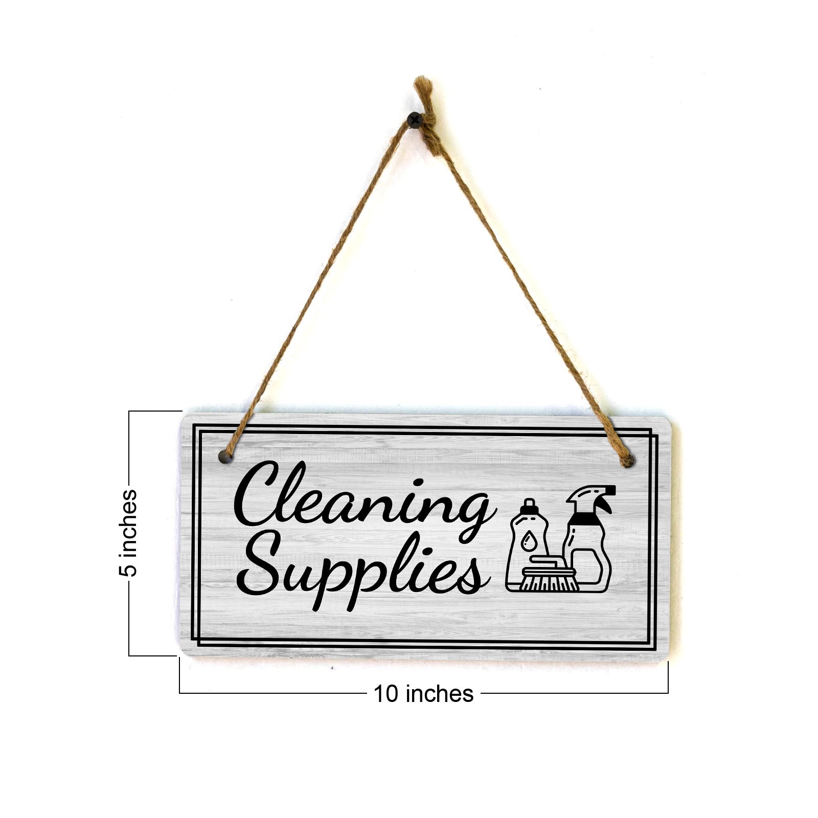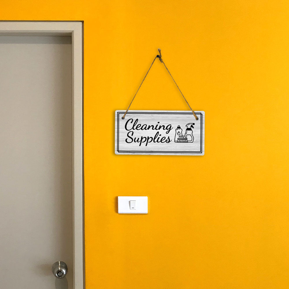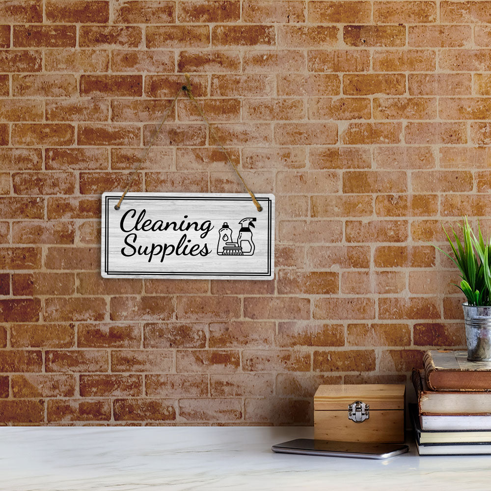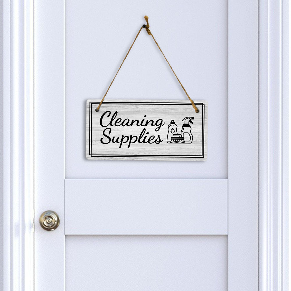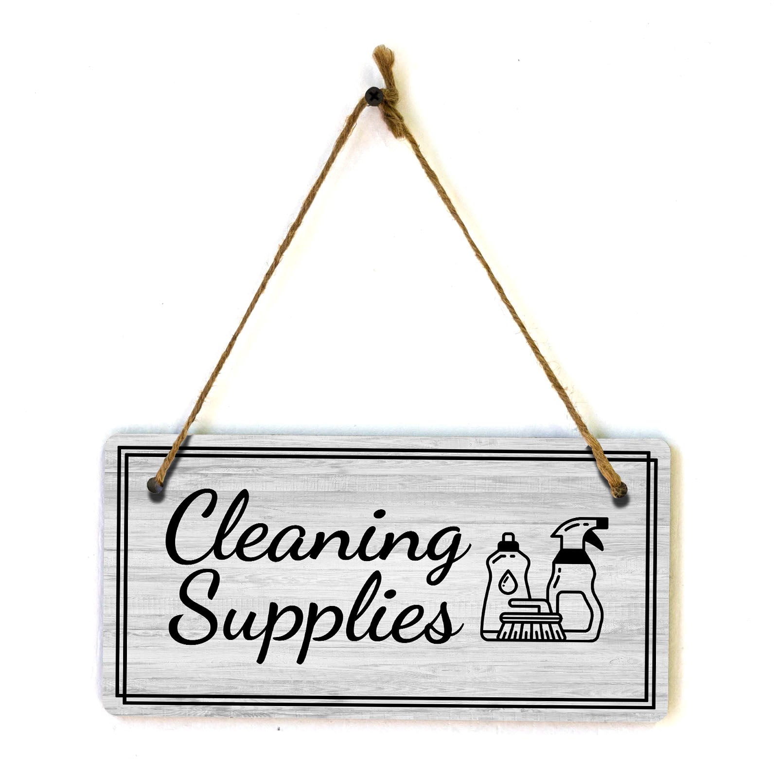 Introducing our versatile and stylish Cleaning Supplies, the perfect blend of style and sophistication to elevate your home or workplace. Our 5x10 Hanging Sign range is the perfect choice for your home, workplace or business. Each sign is attached with rustic twine, providing a charming and versatile accent for any space. Our curated designs effortlessly complement a variety of styles, from rustic farmhouse or Modern Chic, to simple and functional options. Choose from our diverse range of designs to personalize your space. Whether it's a warm welcome at the entrance, a motivational quote for your workspace, or a playful touch for the kids' room, our Hanging Wall or Door Signs are the perfect way to express your unique style.