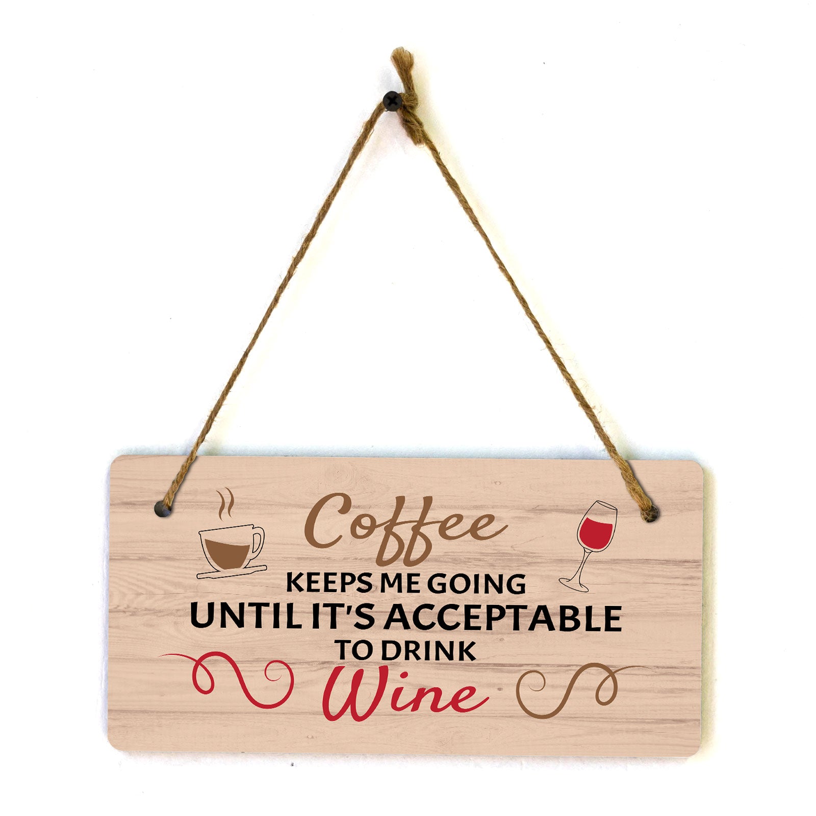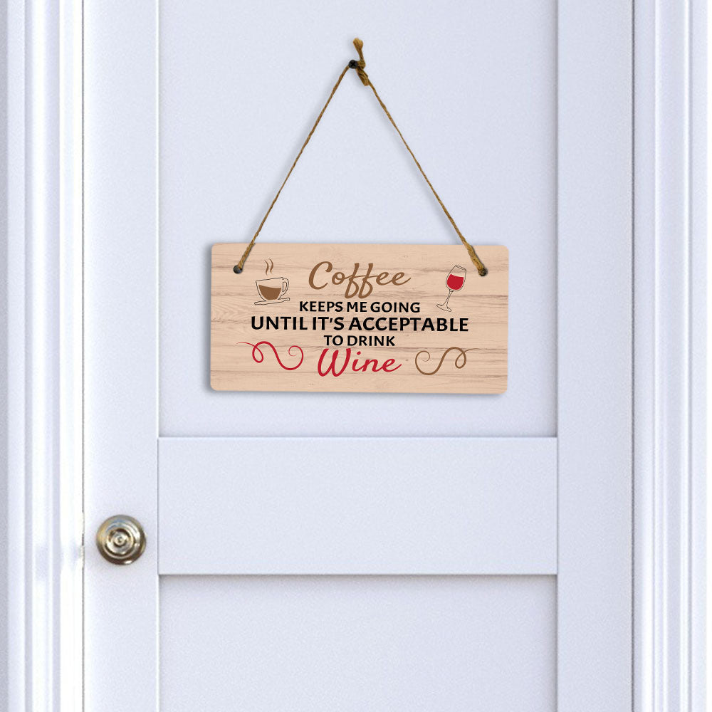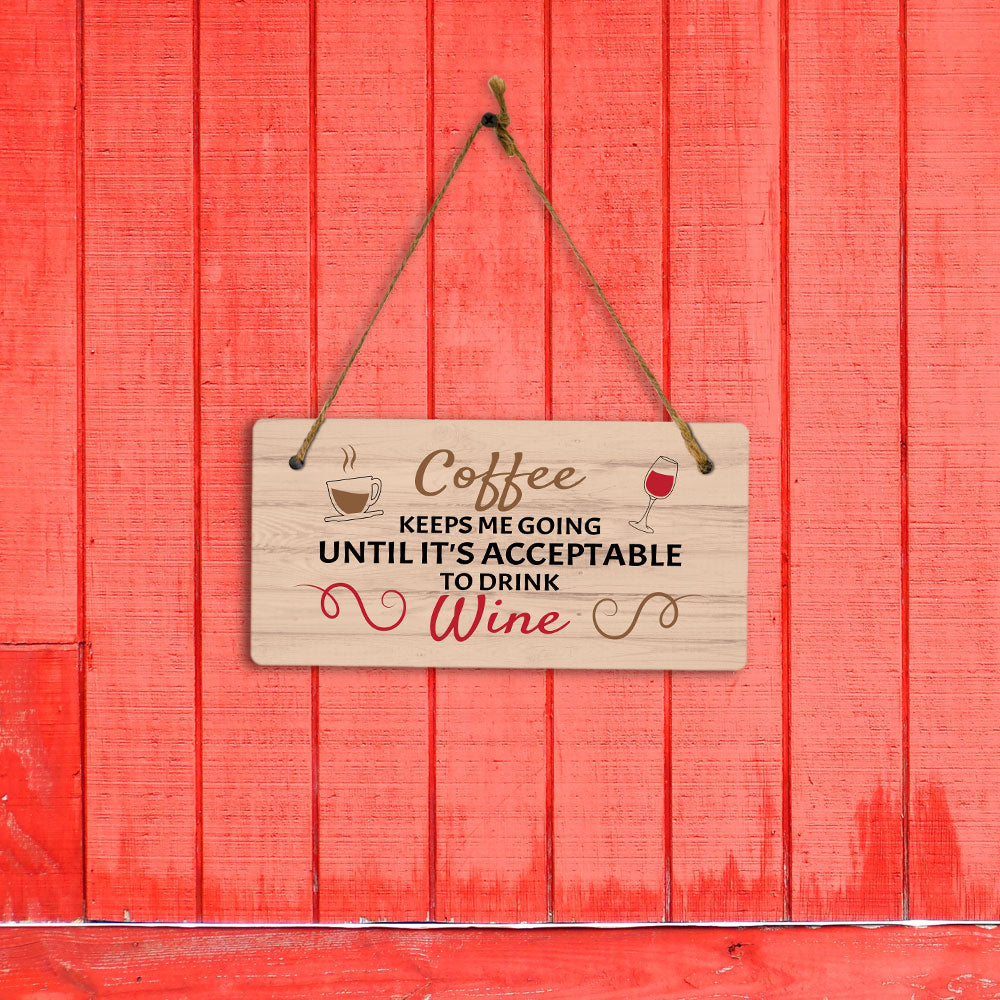 Coffee Keeps Me Going Until It's Acceptable To Drink Wine (5 x 10") Hanging Plus Wall or Door Sign