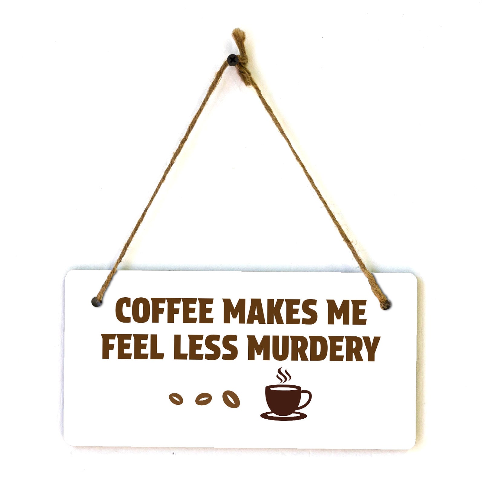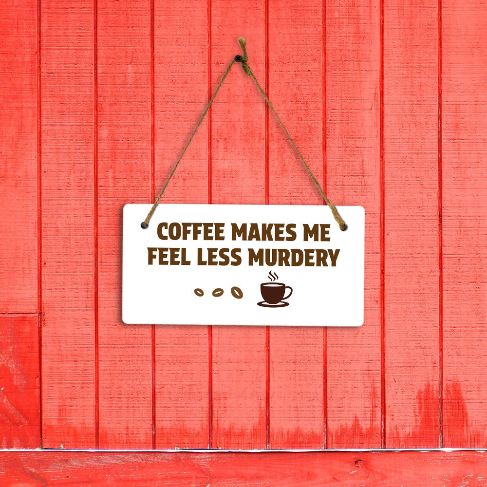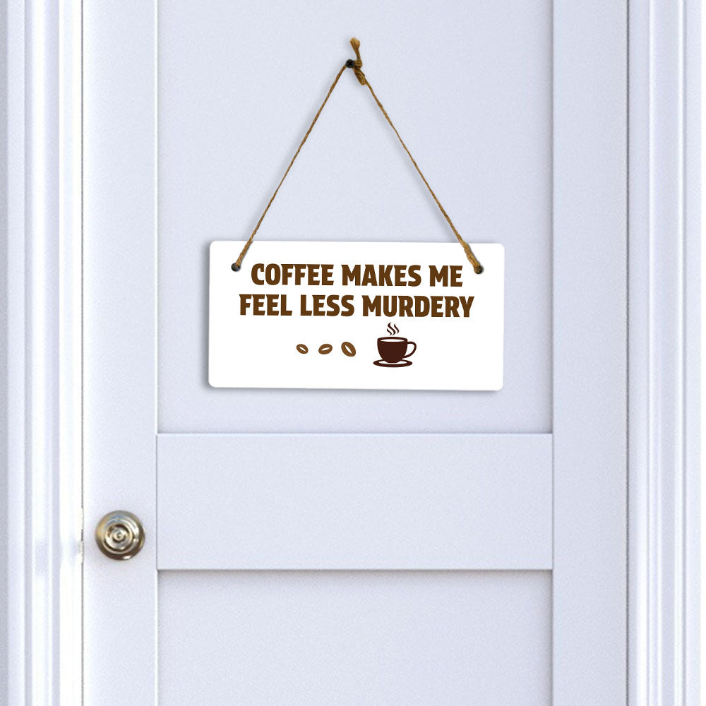 Coffee Makes Me Feel Less Murdery 5" x 10" Hanging Wall or Door Sign