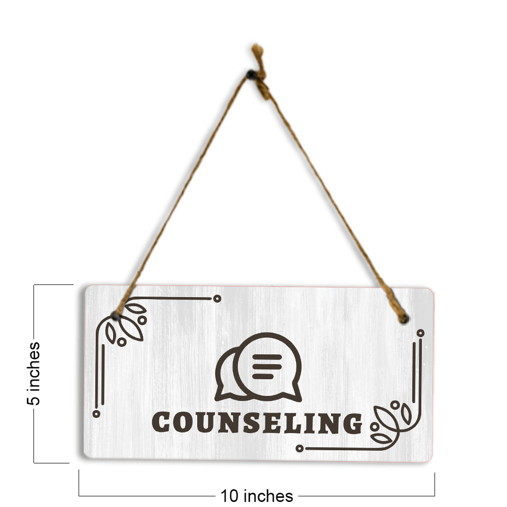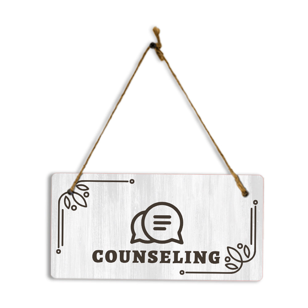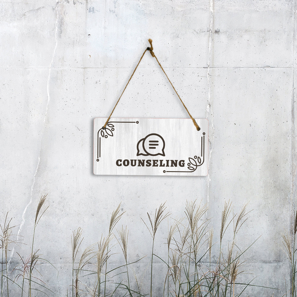Introducing our versatile and stylish Counseling Room, the perfect blend of style and sophistication to elevate your home or workplace. Our 5x10 Hanging Sign range is the perfect choice for your home, workplace or business. Each sign is attached with rustic twine, providing a charming and versatile accent for any space. Our curated designs effortlessly complement a variety of styles, from rustic farmhouse or Modern Chic, to simple and functional options. Choose from our diverse range of designs to personalize your space. Whether it's a warm welcome at the entrance, a motivational quote for your workspace, or a playful touch for the kids' room, our Hanging Wall or Door Signs are the perfect way to express your unique style.