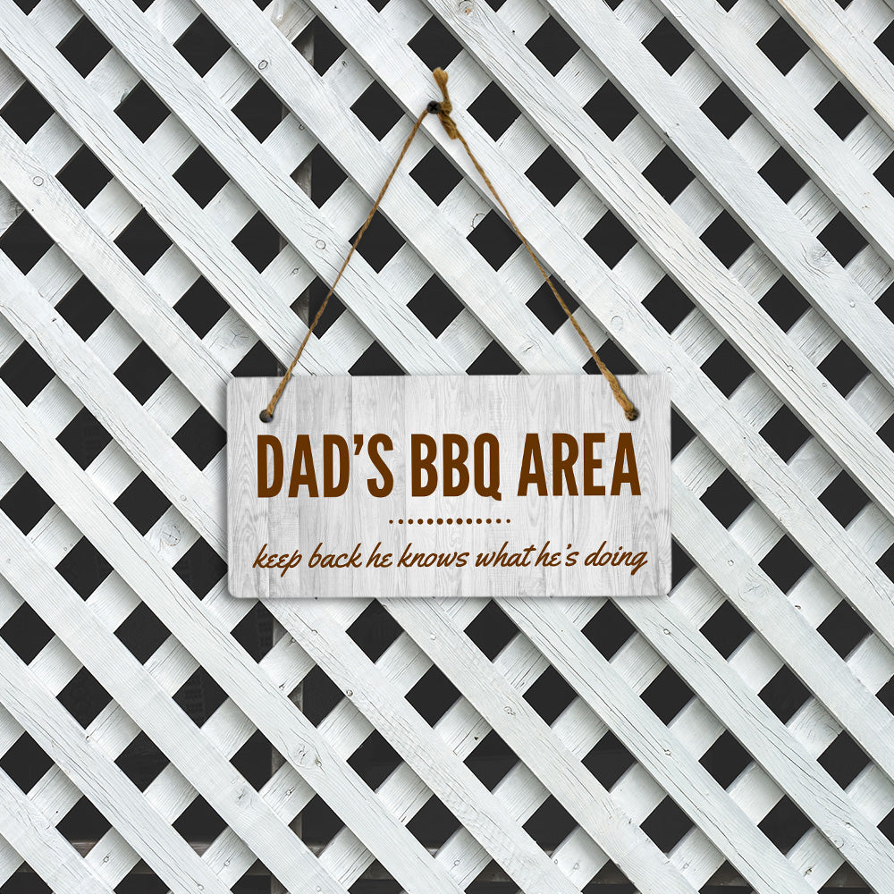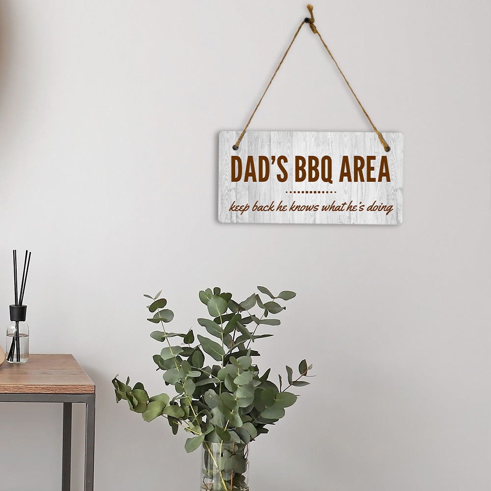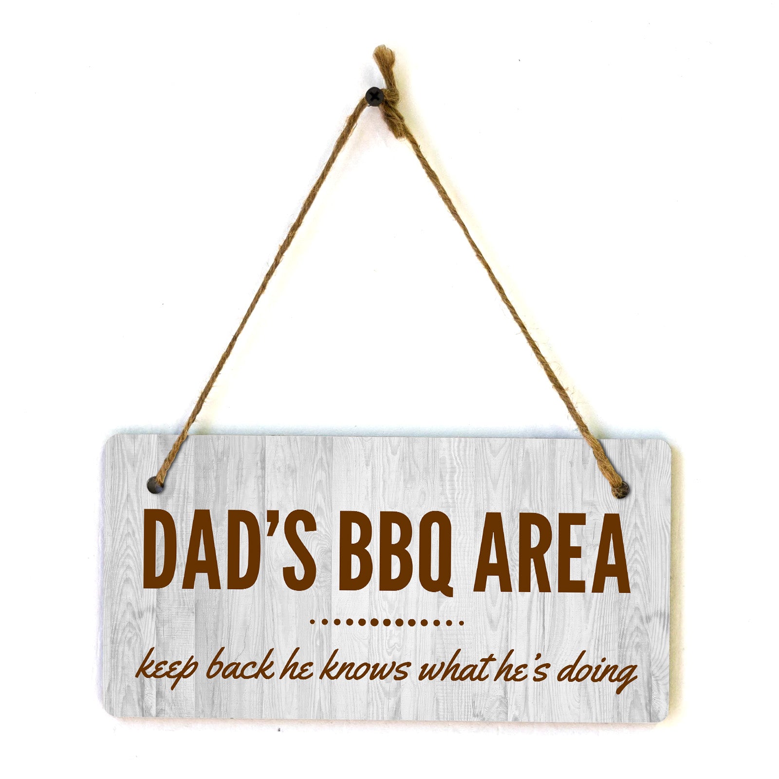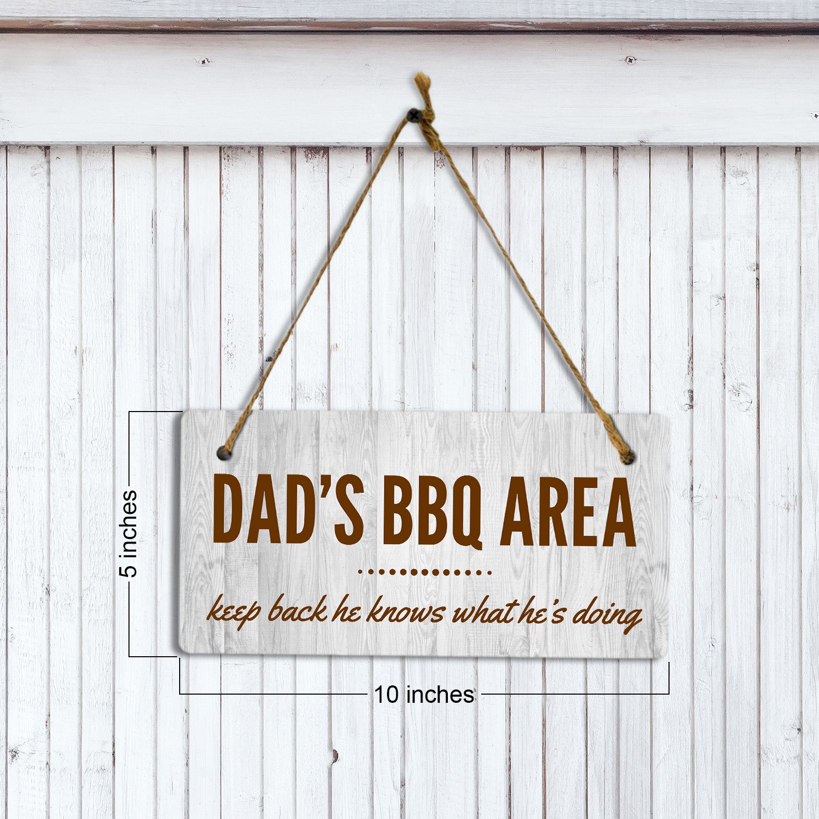 Dad's BBQ Area Keep Back He Knows What He's Doing 5x10 Hanging Plus Wall or Door Sign