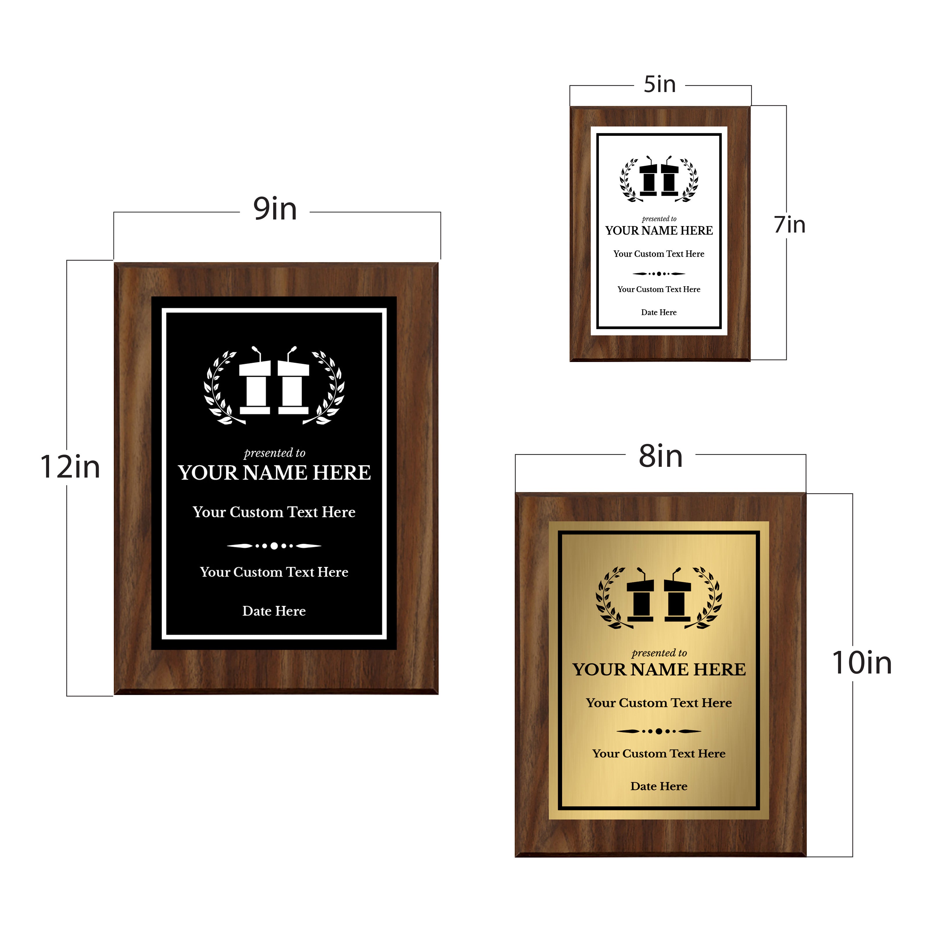 Celebrate an extraordinary achievement or milestone with the Signs ByLITA Custom Debating and Model Diplomacy Theme Award Plaque. Our personalized plaques are the perfect way to honor and commemorate special moments, whether it's recognizing a career accomplishment, academic success, or any other noteworthy event. This Debating and Model Diplomacy Theme Customizable Award Plaque is not just a decoration; it's a heartfelt expression of recognition and appreciation. Commemorate your special moments with a personalized touch that will be cherished for years to come. With three sizes and over 20 fonts to choose from, you can create the ideal personalized keepsake for any occasion. Our plaques come shrink-wrapped for added protection and with precut keyhole slots on the back for wall mounting. For a more versatile display option, choose our stylish black easel. Please double check that your text is correct and has no typos. We will make your plaque exactly as we receive the written custom inputs. If you make an error please cancel your order and re-order with your corrected text.