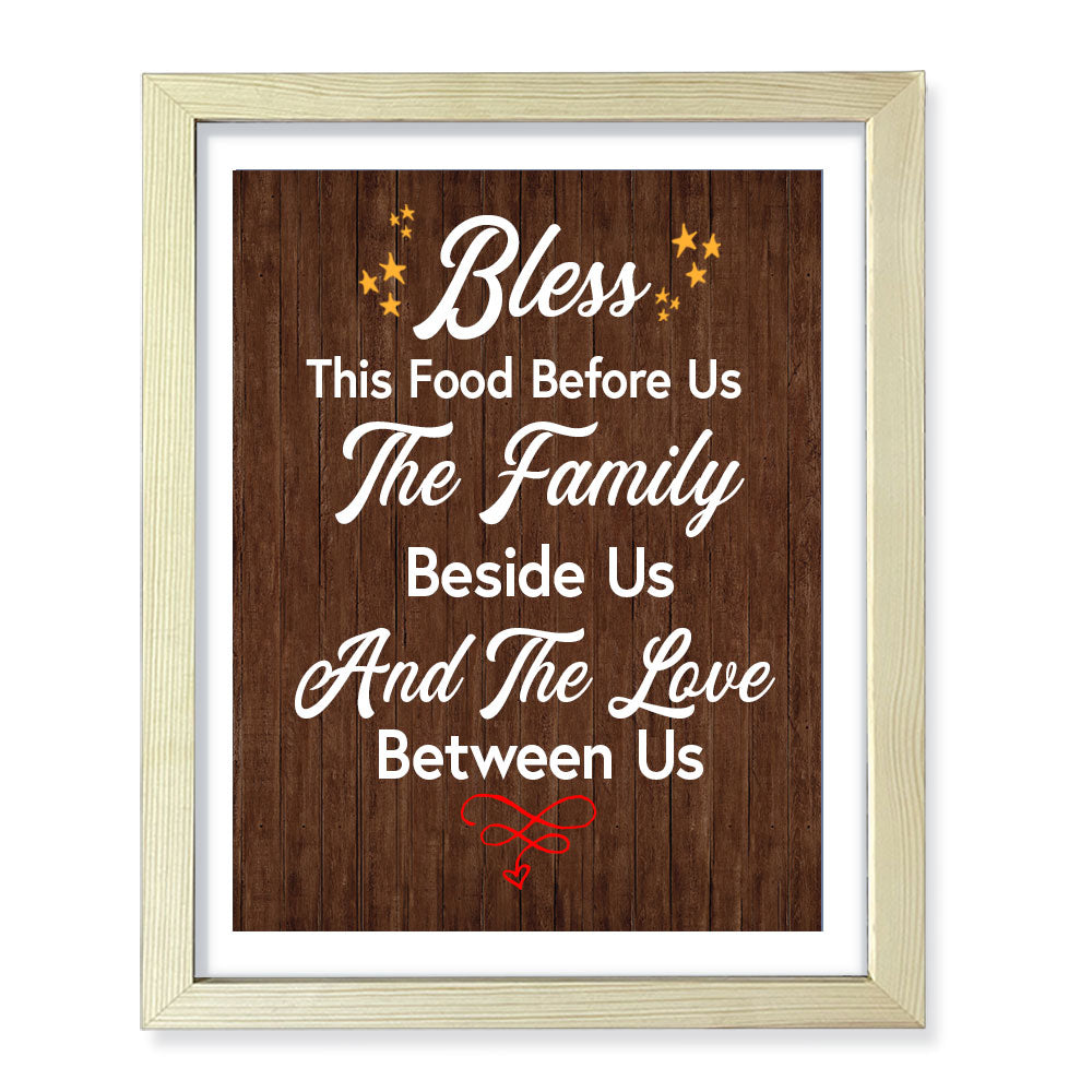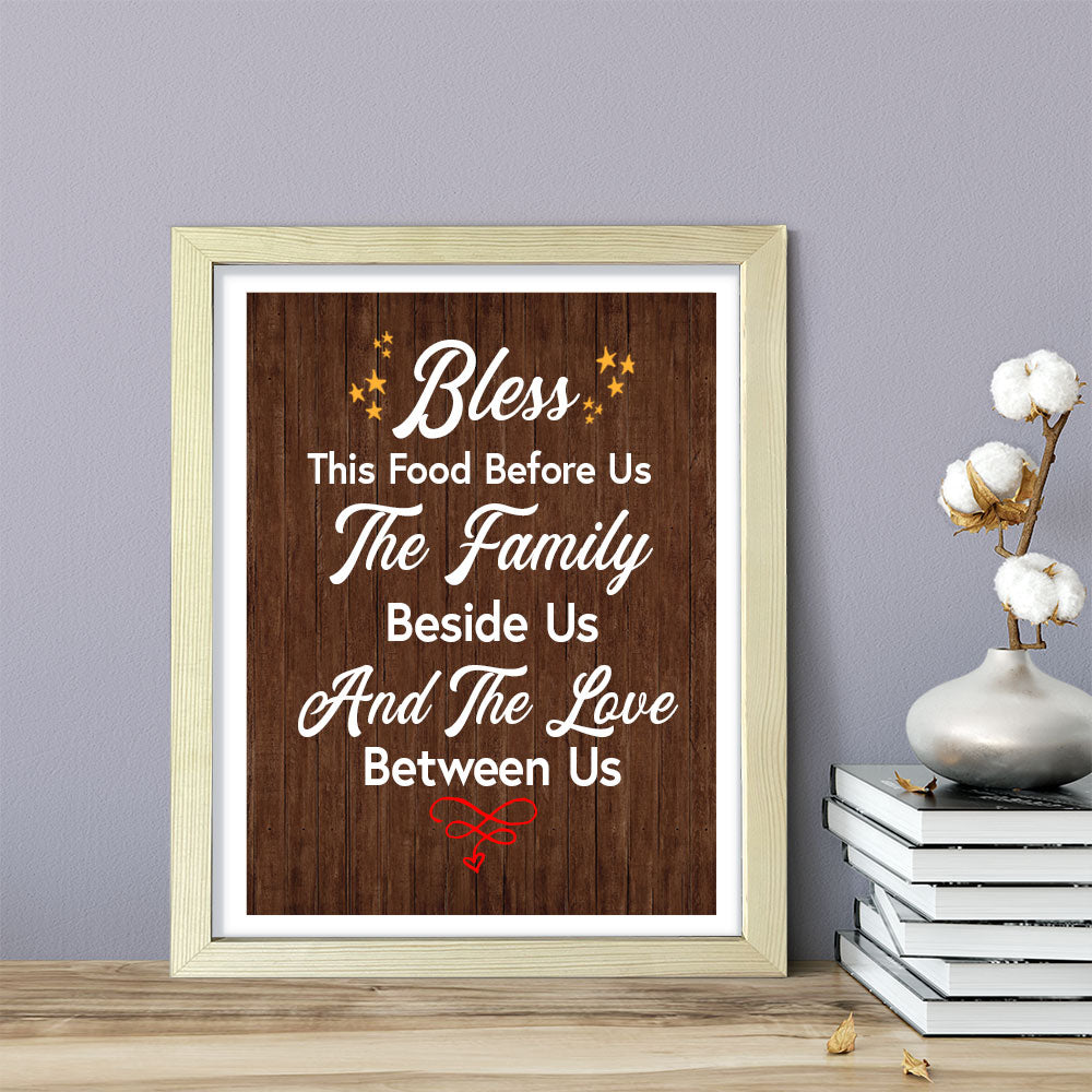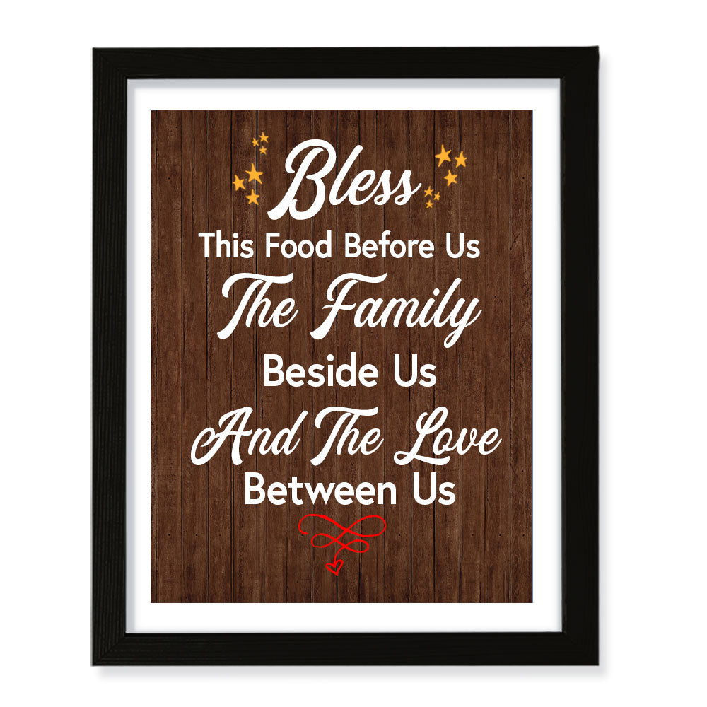 Designs ByLITA Bless This Food Before Us The Family Beside Us And The Love, Between Us, FRAMED Print. Our wall art is available either as a 5" x 7", 8" x 10" or 11" x 14". Printed on 160 GSM high quality card. Comes as an FRAMED print. Easy to hang on any wall. This art is stylish modern decoration for your home and office decoration wall art. Be sure to check out our other designs!