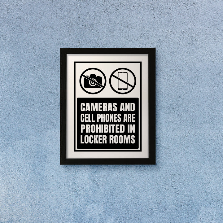 Designs ByLITA Cameras And Cell Phones Are Prohibited In Locker Rooms, FRAMED Print. Our wall art is available either as a 5" x 7", 8" x 10" or 11" x 14". Printed on 160 GSM high quality card. Comes as an FRAMED print. Easy to hang on any wall. This art is stylish modern decoration for your home and office decoration wall art. Be sure to check out our other designs!