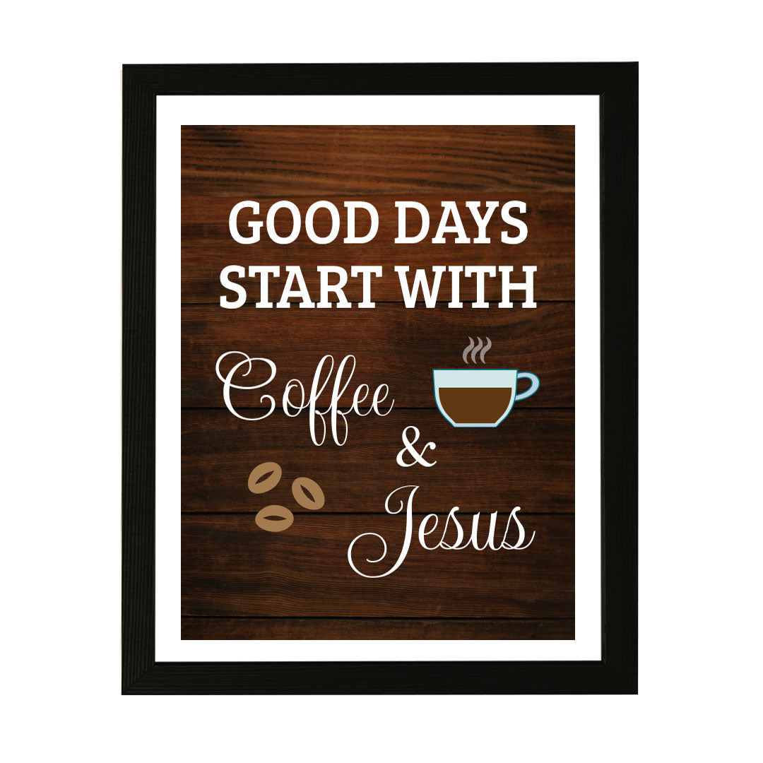 Designs ByLITA Good Days Start With Coffee & Jesus, FRAMED Print. Our wall art is available either as a 5" x 7", 8" x 10" or 11" x 14". Printed on 160 GSM high quality card. Comes as an FRAMED print. Easy to hang on any wall. This art is stylish modern decoration for your home and office decoration wall art. Be sure to check out our other designs!