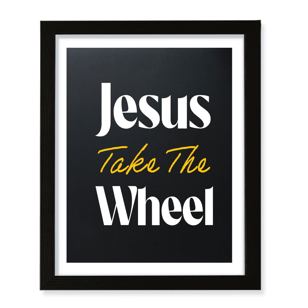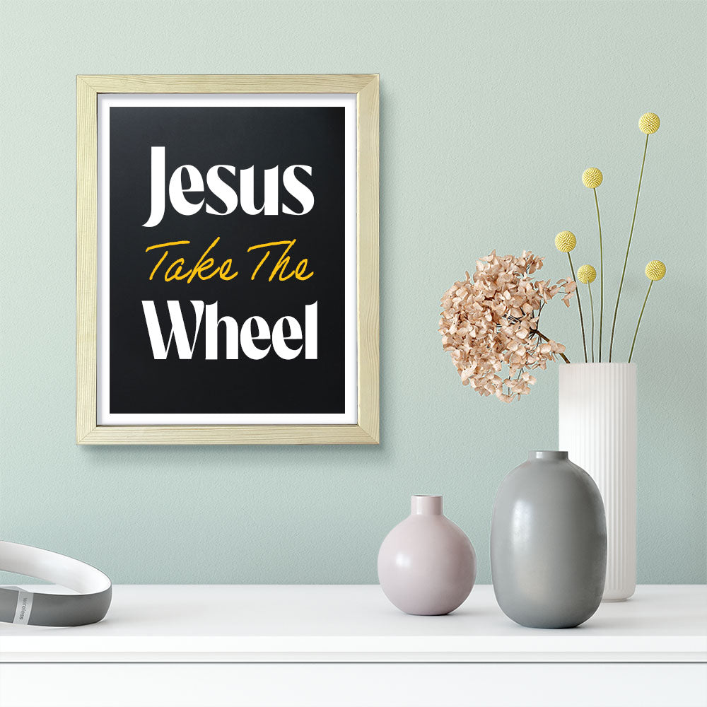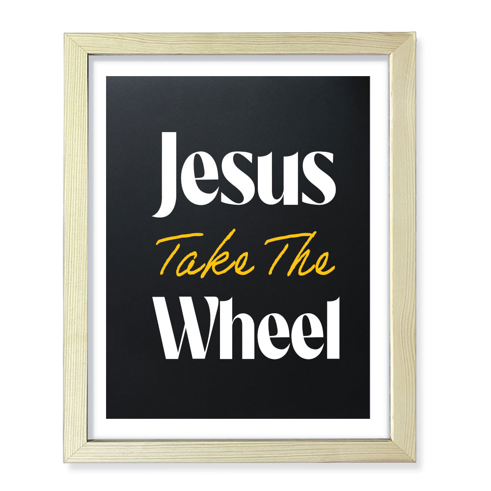 Designs ByLITA Jesus Take The Wheel, FRAMED Print. Our wall art is available either as a 5" x 7", 8" x 10" or 11" x 14". Printed on 160 GSM high quality card. Comes as an FRAMED print. Easy to hang on any wall. This art is stylish modern decoration...