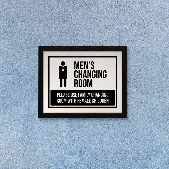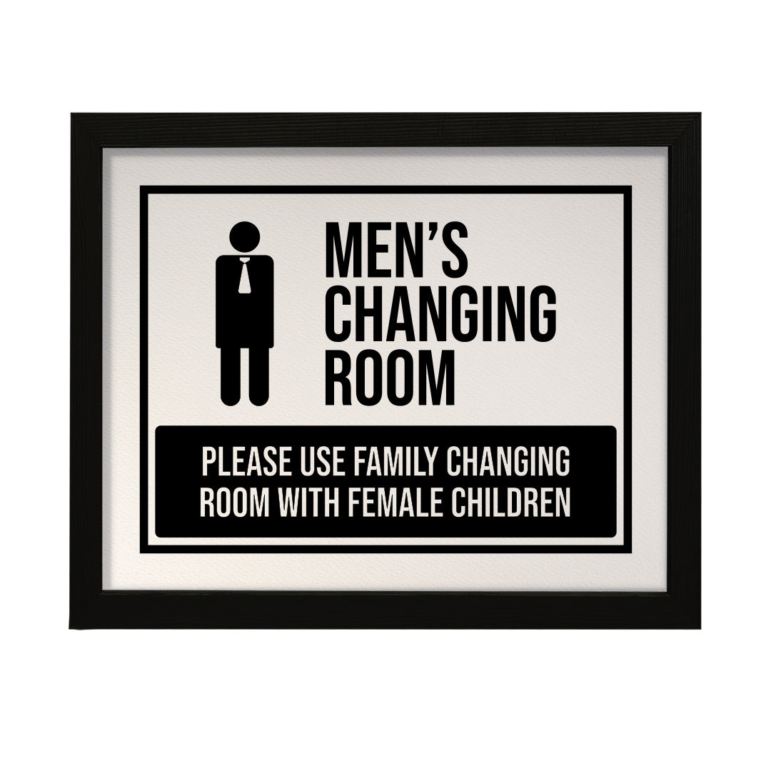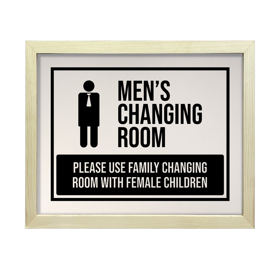 Designs ByLITA Men's Changing Room Please Use Family Changing Room With Female Children, FRAMED Print. Our wall art is available either as a 5" x 7", 8" x 10" or 11" x 14". Printed on 160 GSM high quality card. Comes as an FRAMED print. Easy to hang on any wall. This art is stylish modern decoration for your home and office decoration wall art. Be sure to check out our other designs!