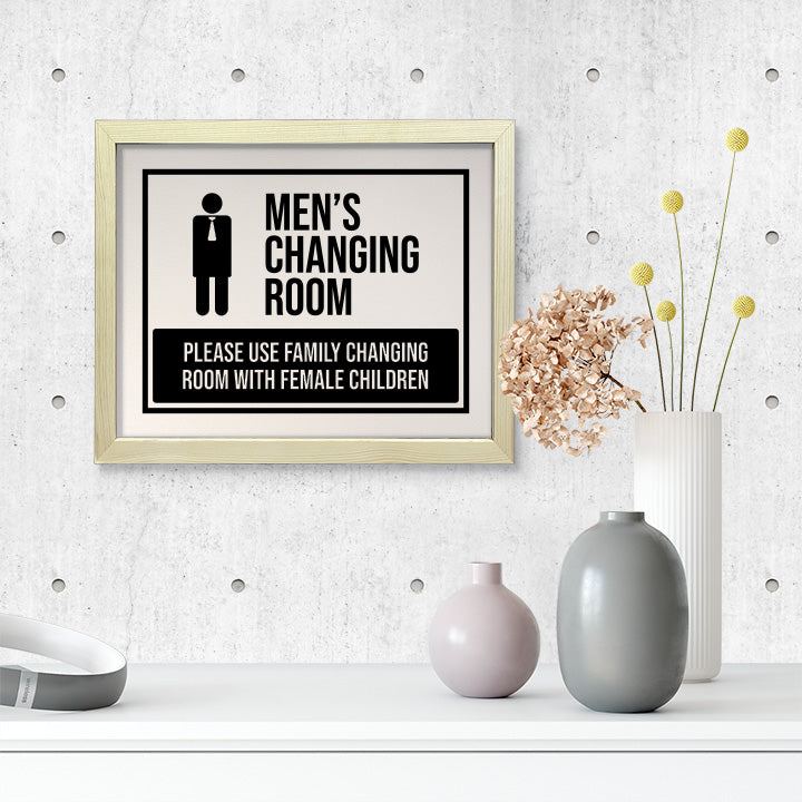 Designs ByLITA Men's Changing Room Please Use Family Changing Room With Female Children, FRAMED Print. Our wall art is available either as a 5" x 7", 8" x 10" or 11" x 14". Printed on 160 GSM high quality card. Comes as an FRAMED print. Easy to hang on any...