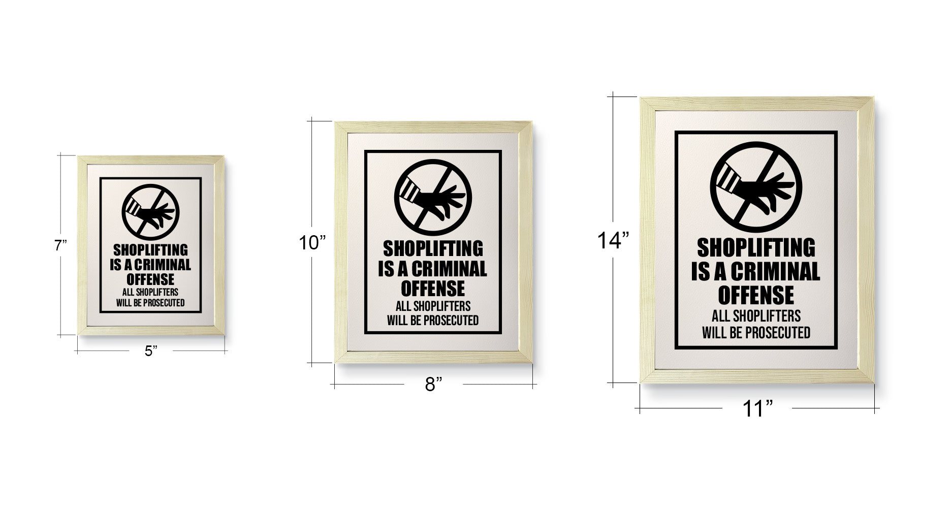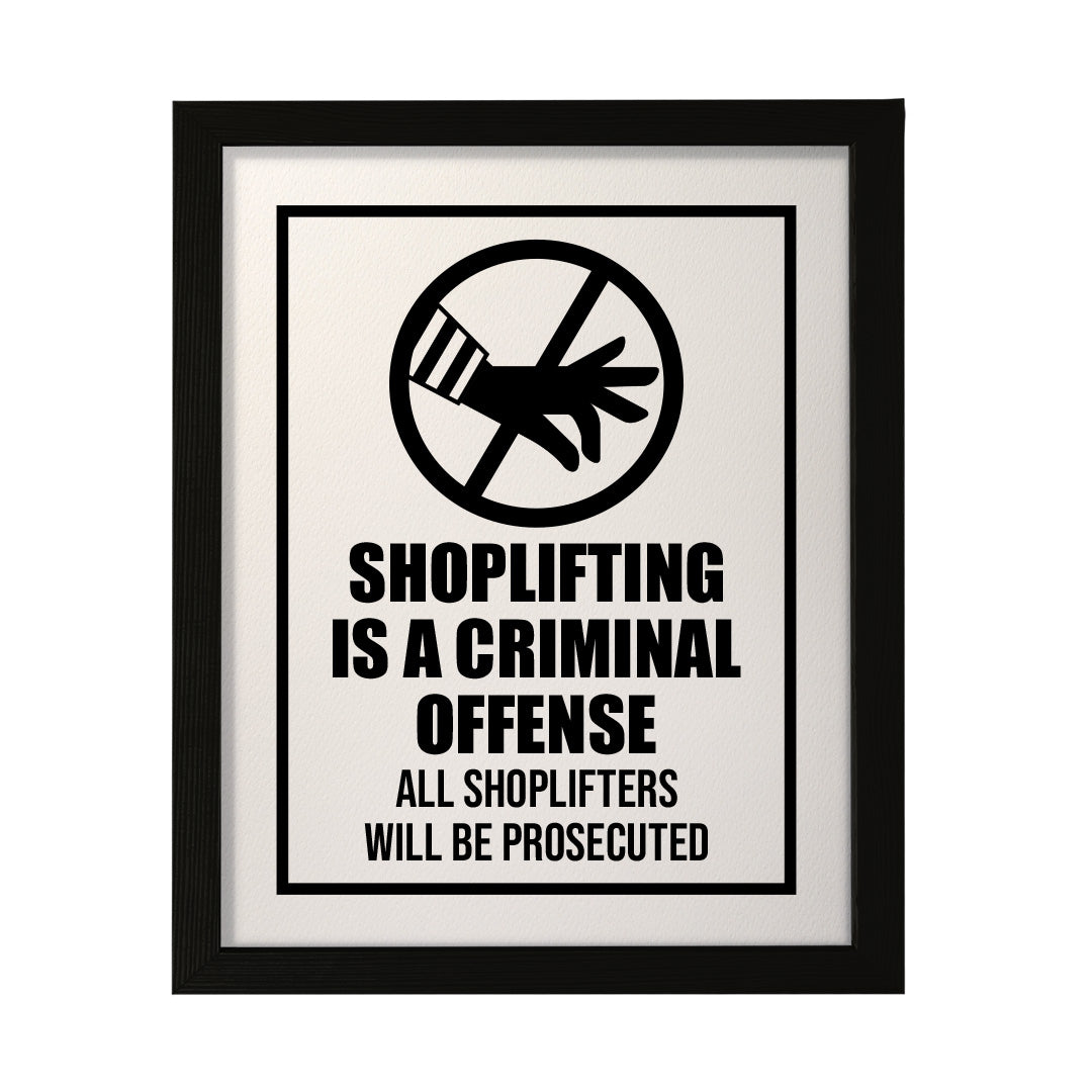 Designs ByLITA Shoplifting Is A Criminal Offense All Shoplifters Will Be Prosecuted, FRAMED Print. Our wall art is available either as a 5" x 7", 8" x 10" or 11" x 14". Printed on 160 GSM high quality card. Comes as an FRAMED print. Easy to hang on any wall....