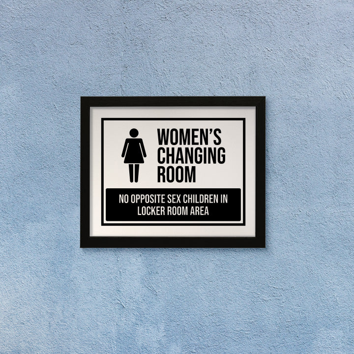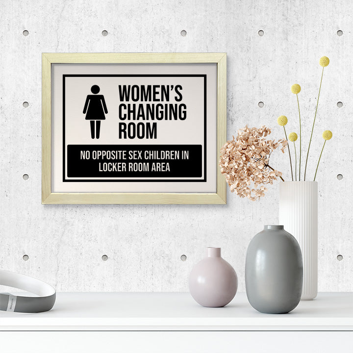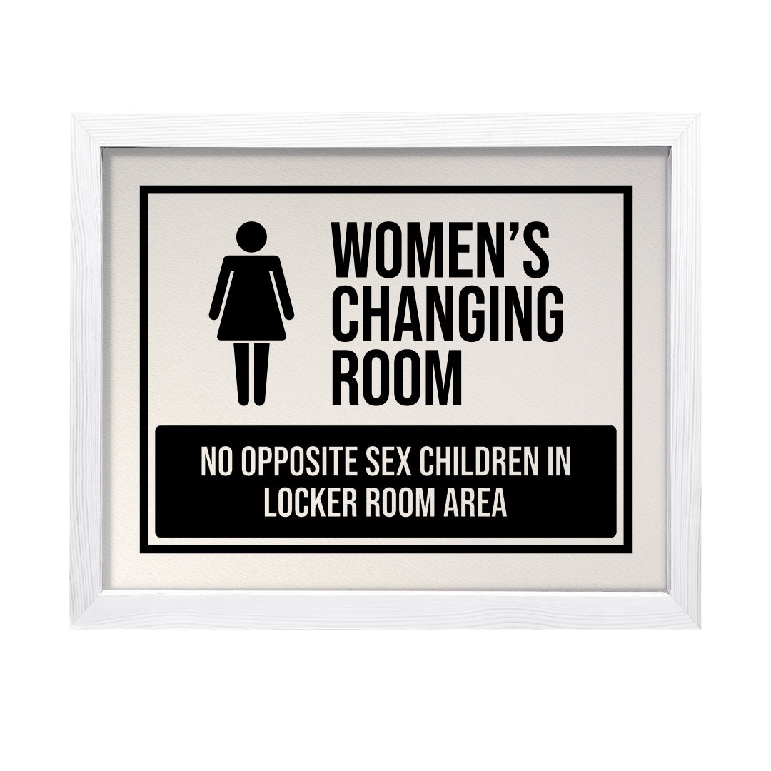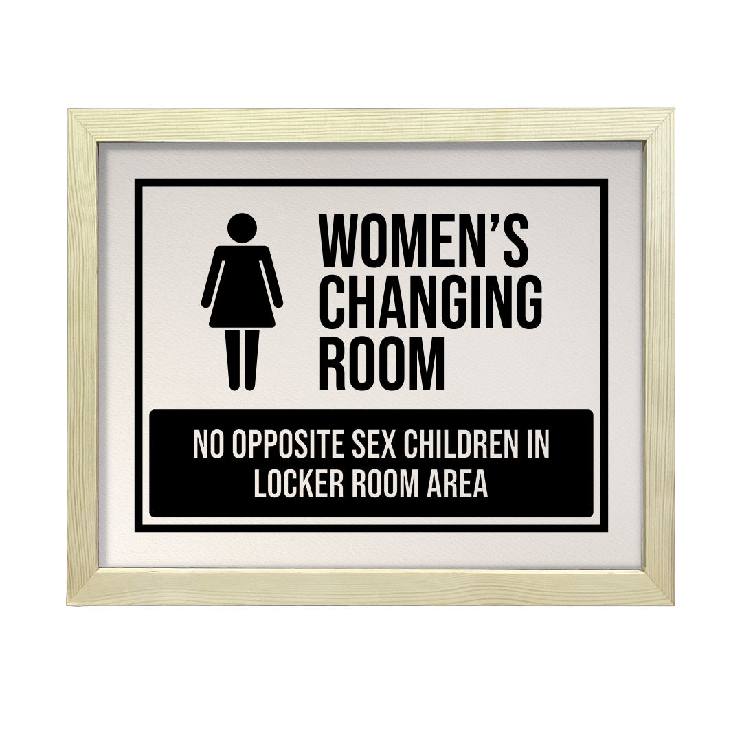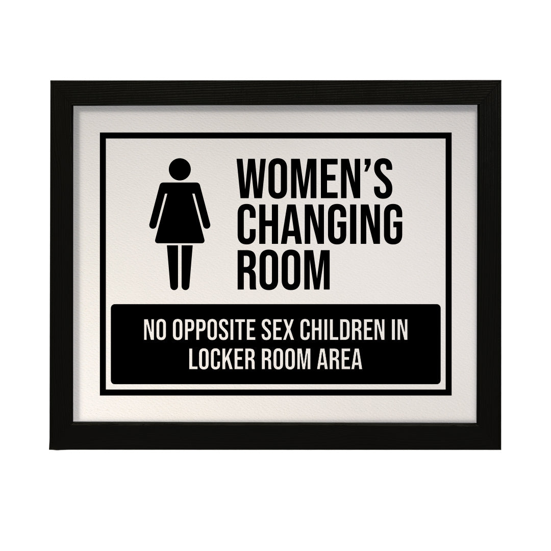 Designs ByLITA Women's Changing Room No Opposite Sex Children In Locker Room Area, FRAMED Print. Our wall art is available either as a 5" x 7", 8" x 10" or 11" x 14". Printed on 160 GSM high quality card. Comes as an FRAMED print. Easy to hang on any wall. This art is stylish modern decoration for your home and office decoration wall art. Be sure to check out our other designs!