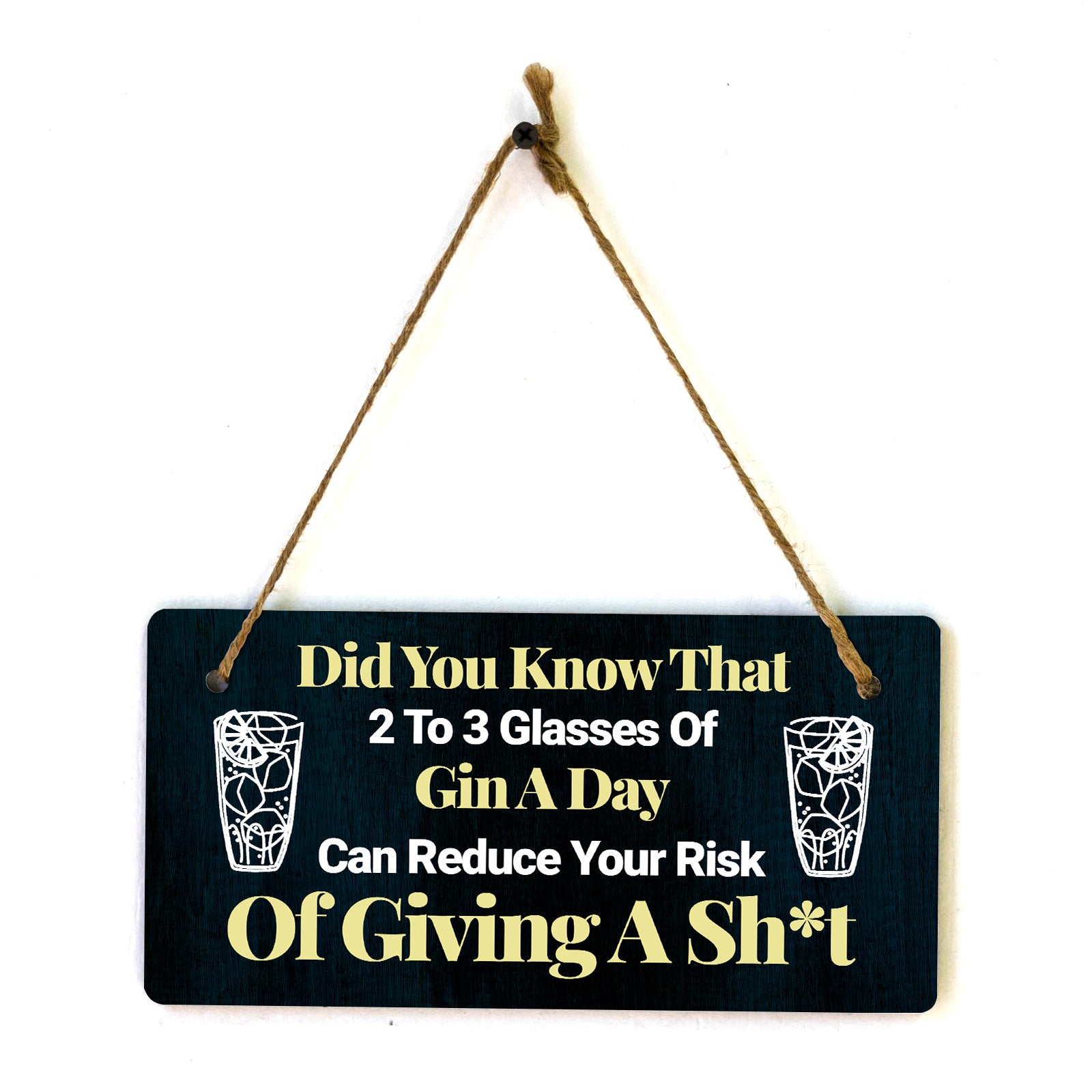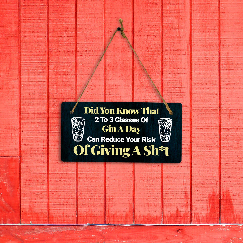 Did You Know That 2 To 3 Glasses Of Gin A Day Can Reduce Your Risk Of Giving A Sh*t 5x10 Hanging Plus Wall or Door Sign
