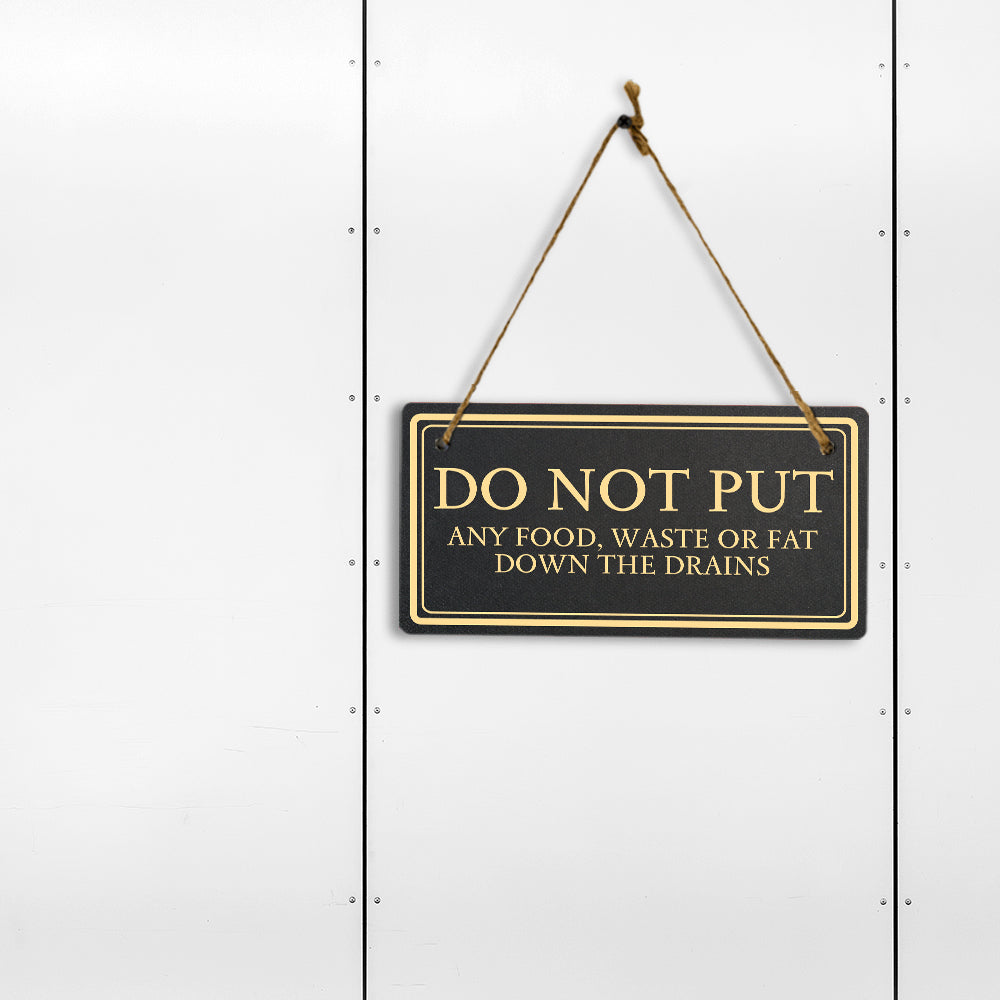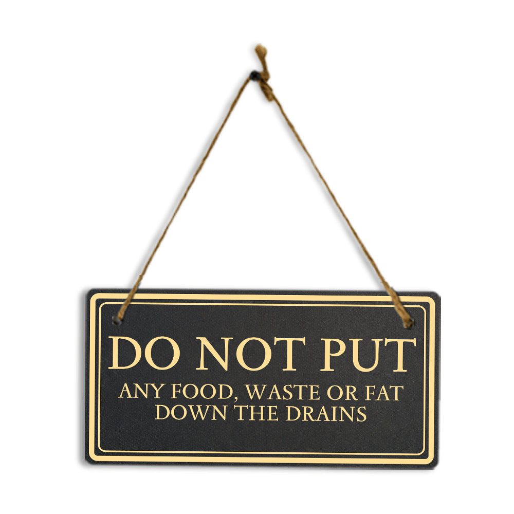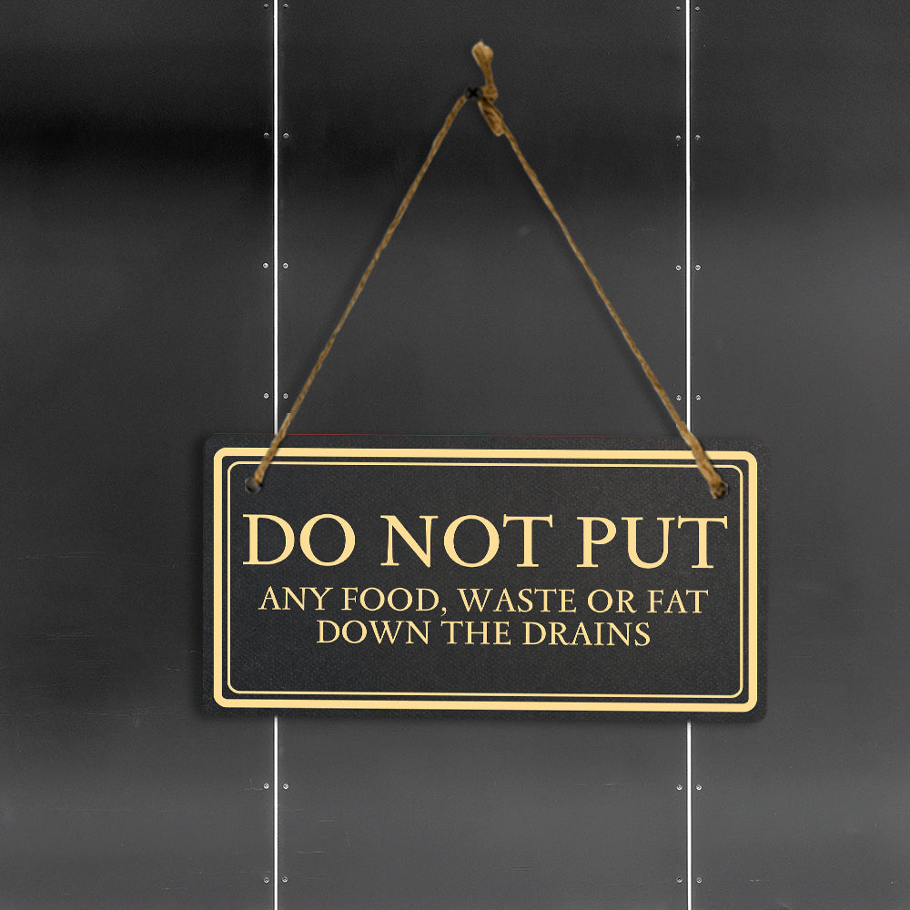 Introducing our versatile and stylish Do Not Put Any Food, Waste or Fat Down The Drains, the perfect blend of style and sophistication to elevate your home or workplace. Our 5x10 Hanging Sign range is the perfect choice for your home, workplace or business. Each sign is attached with rustic...