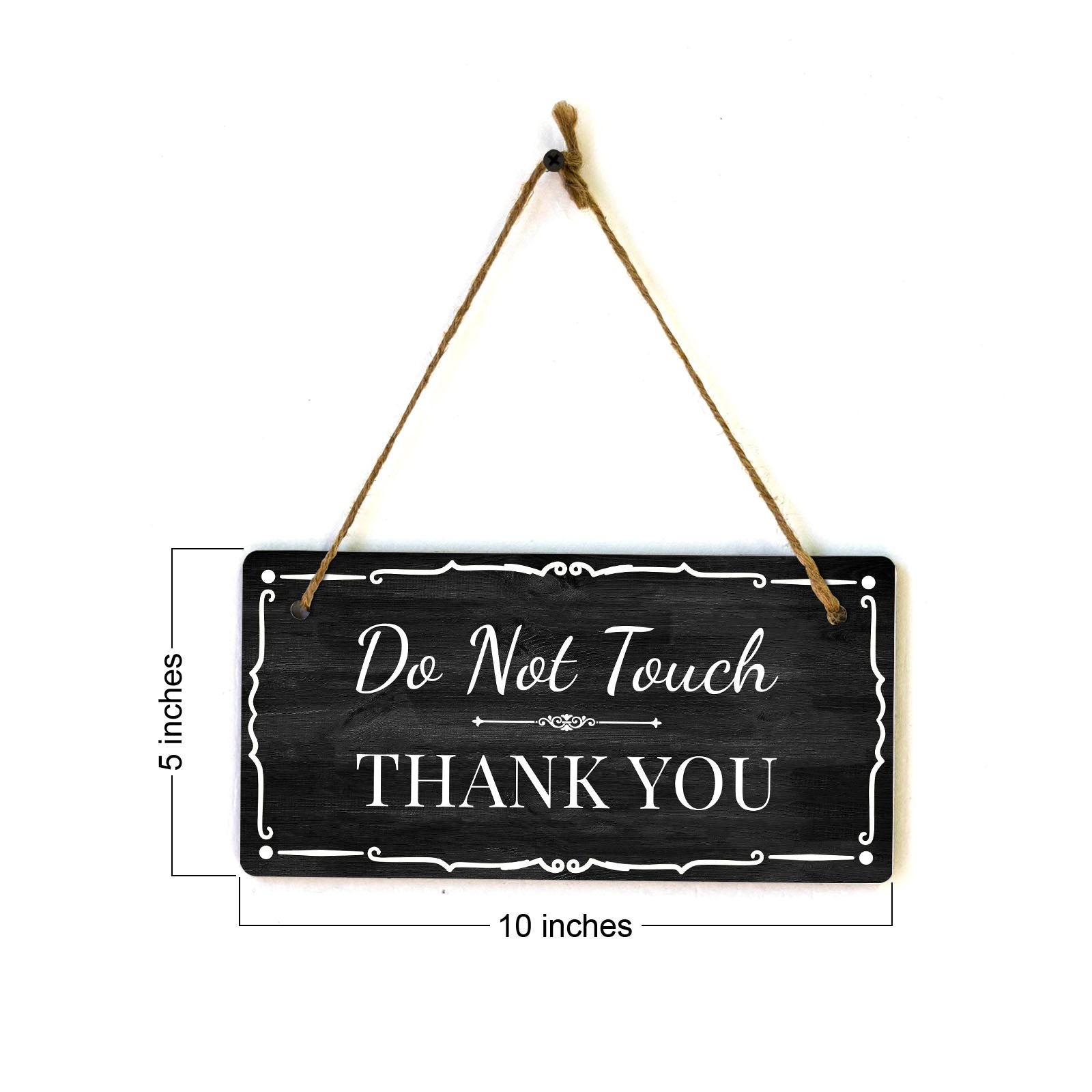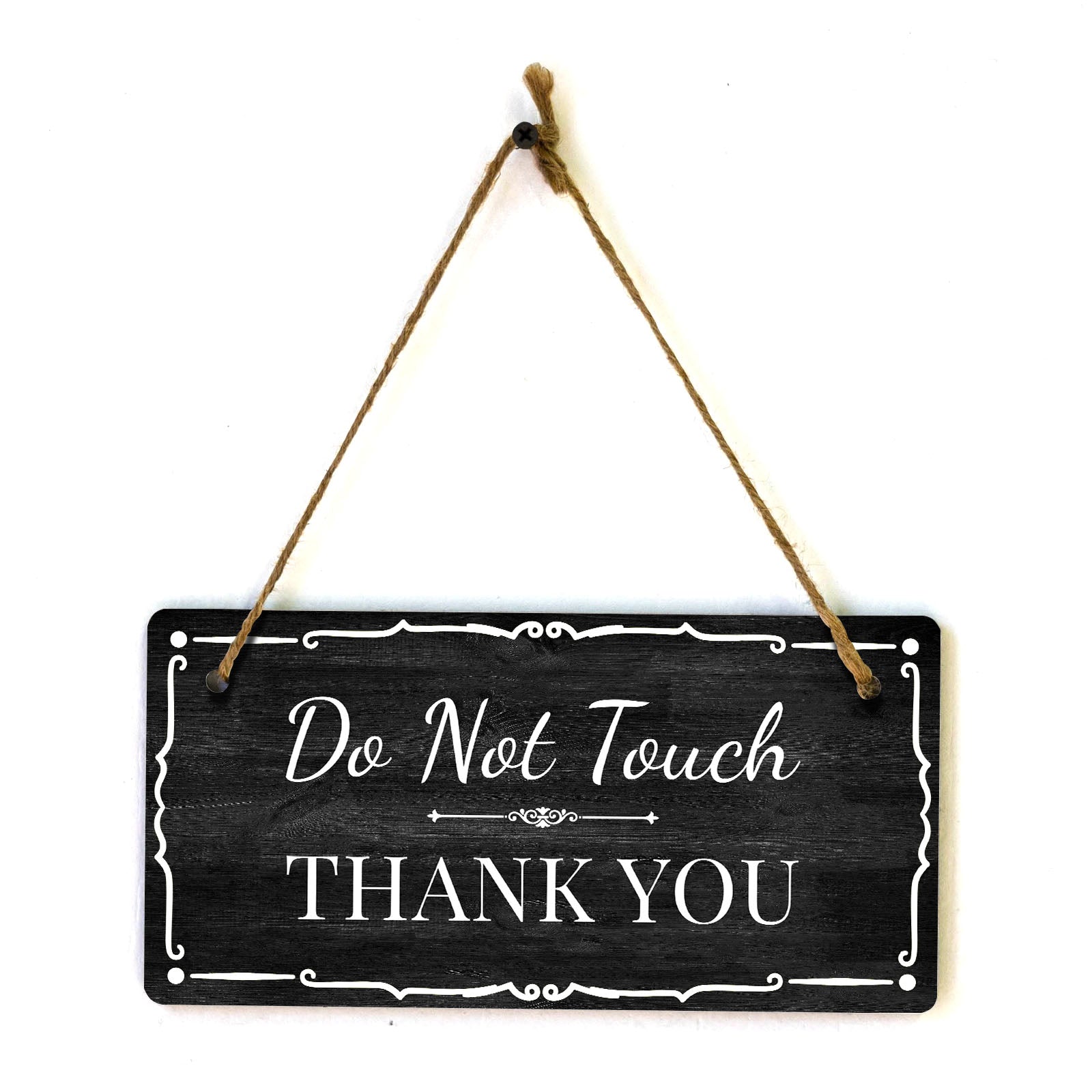 Introducing our versatile and stylish Do Not Touch Thank You, the perfect blend of style and sophistication to elevate your home or workplace. Our 5x10 Hanging Sign range is the perfect choice for your home, workplace or business. Each sign is attached with rustic twine, providing a charming and versatile accent for any space. Our curated designs effortlessly complement a variety of styles, from rustic farmhouse or Modern Chic, to simple and functional options. Choose from our diverse range of designs to personalize your space. Whether it's a warm welcome at the entrance, a motivational quote for your workspace, or a playful touch for the kids' room, our Hanging Wall or Door Signs are the perfect way to express your unique style.
