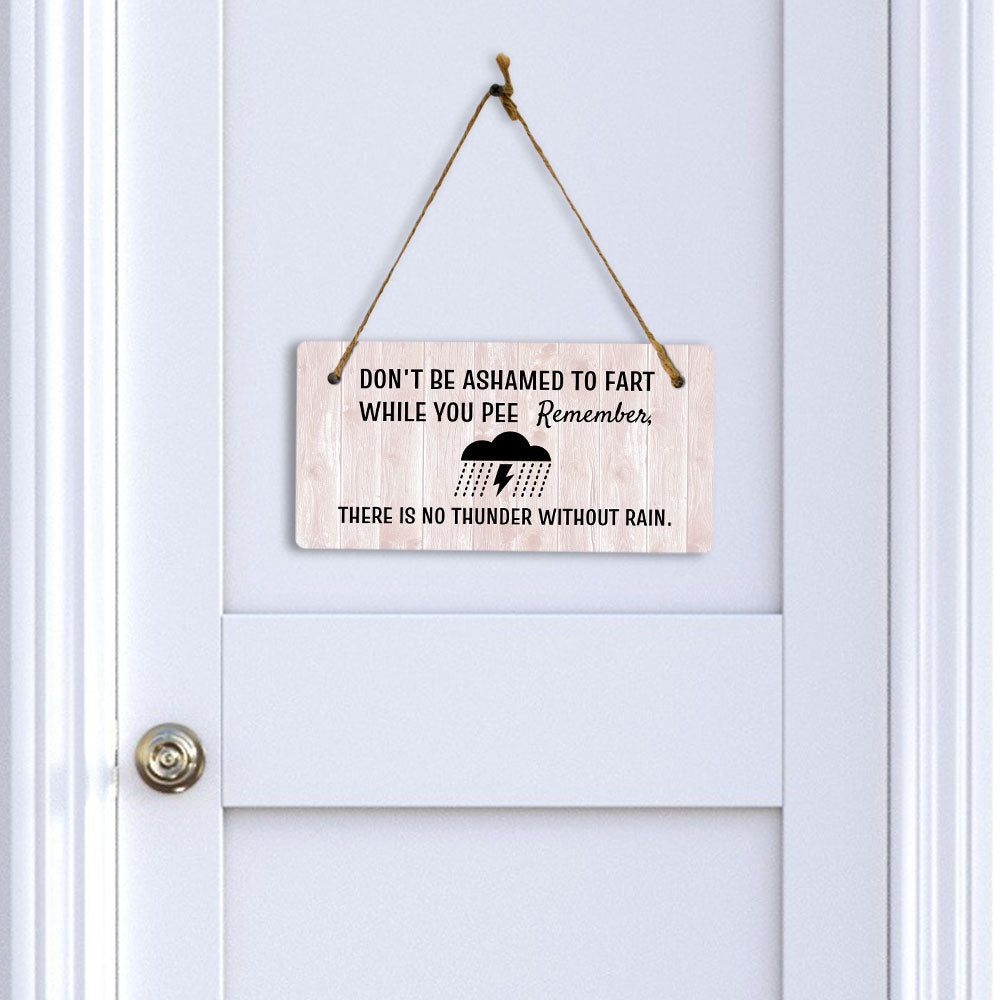 Don't Be Ashamed To Fart While You Pee Remember, There Is No Thunder Without Rain. 5x10 Hanging Plus Wall or Door Sign