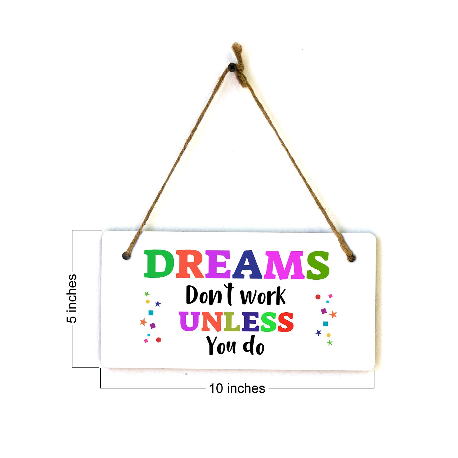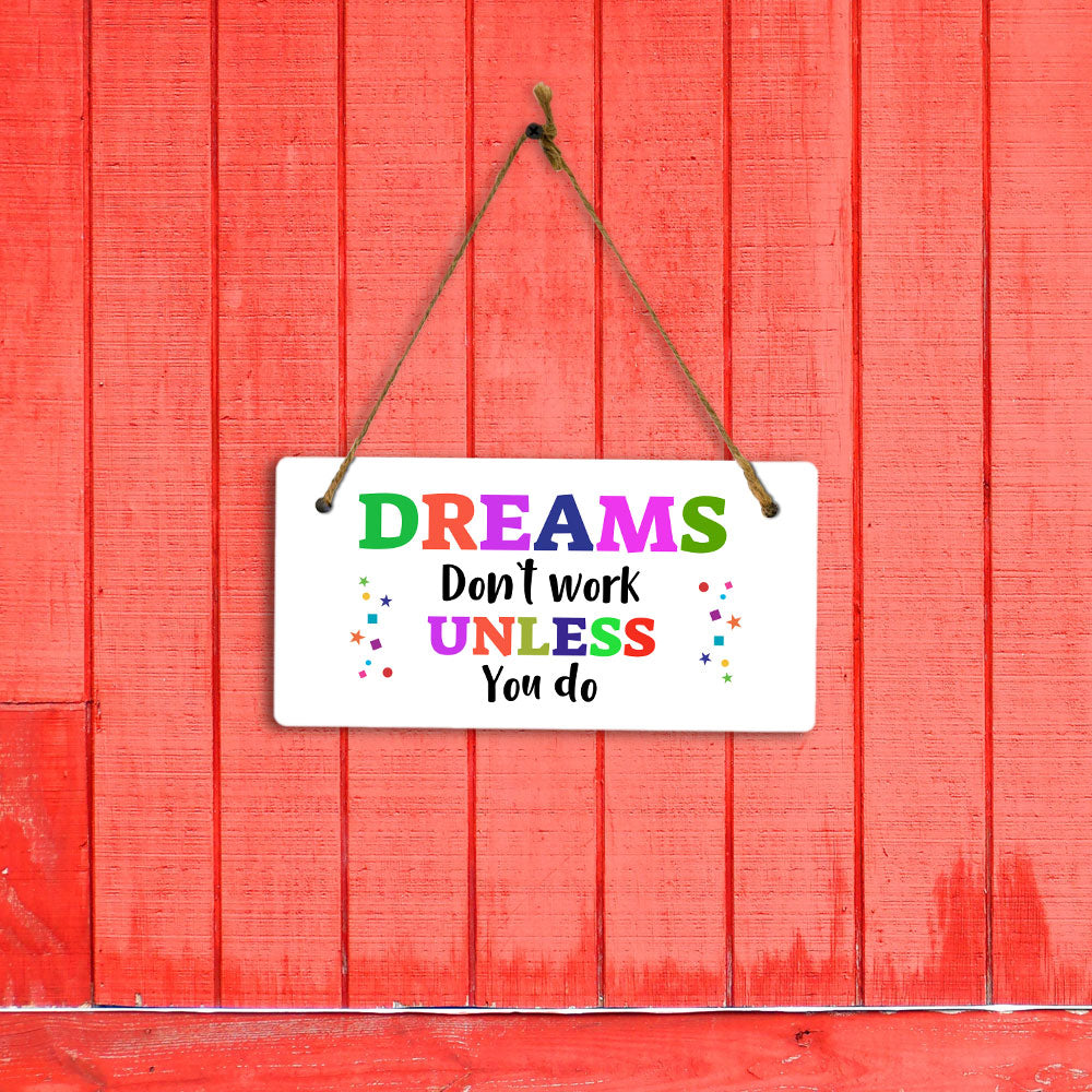Dreams Don't Work Unless You Do 5x10 Hanging Plus Wall or Door Sign