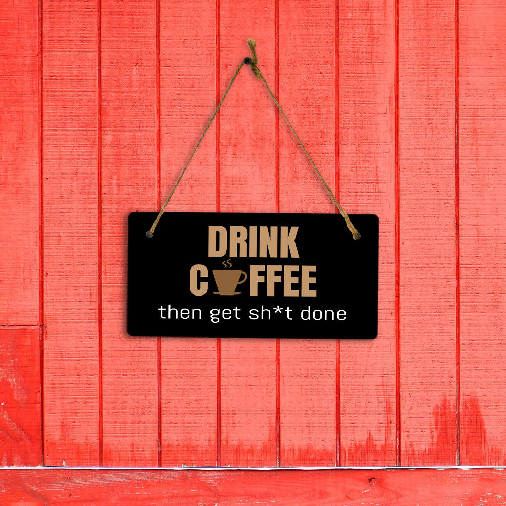 Drink Coffee Then Get Sh*t Done 5" x 10" Hanging Wall or Door Sign