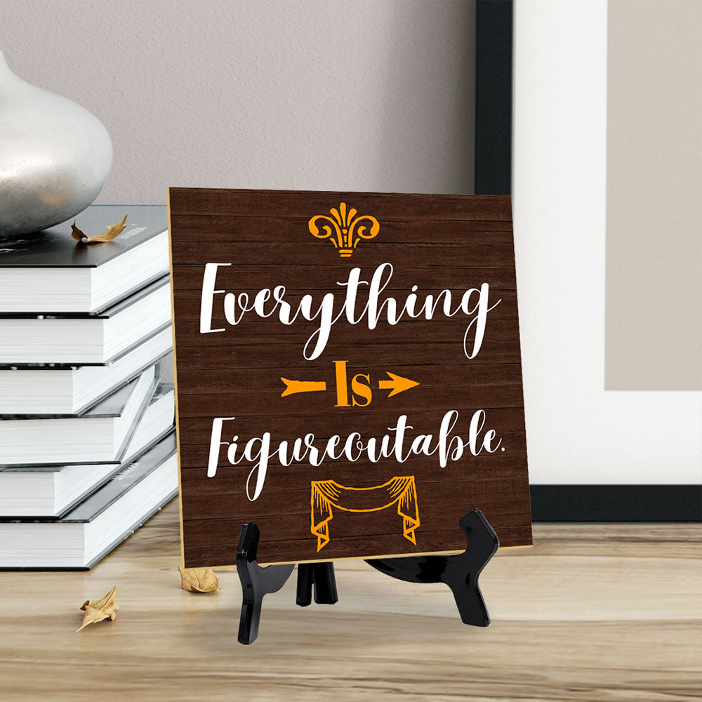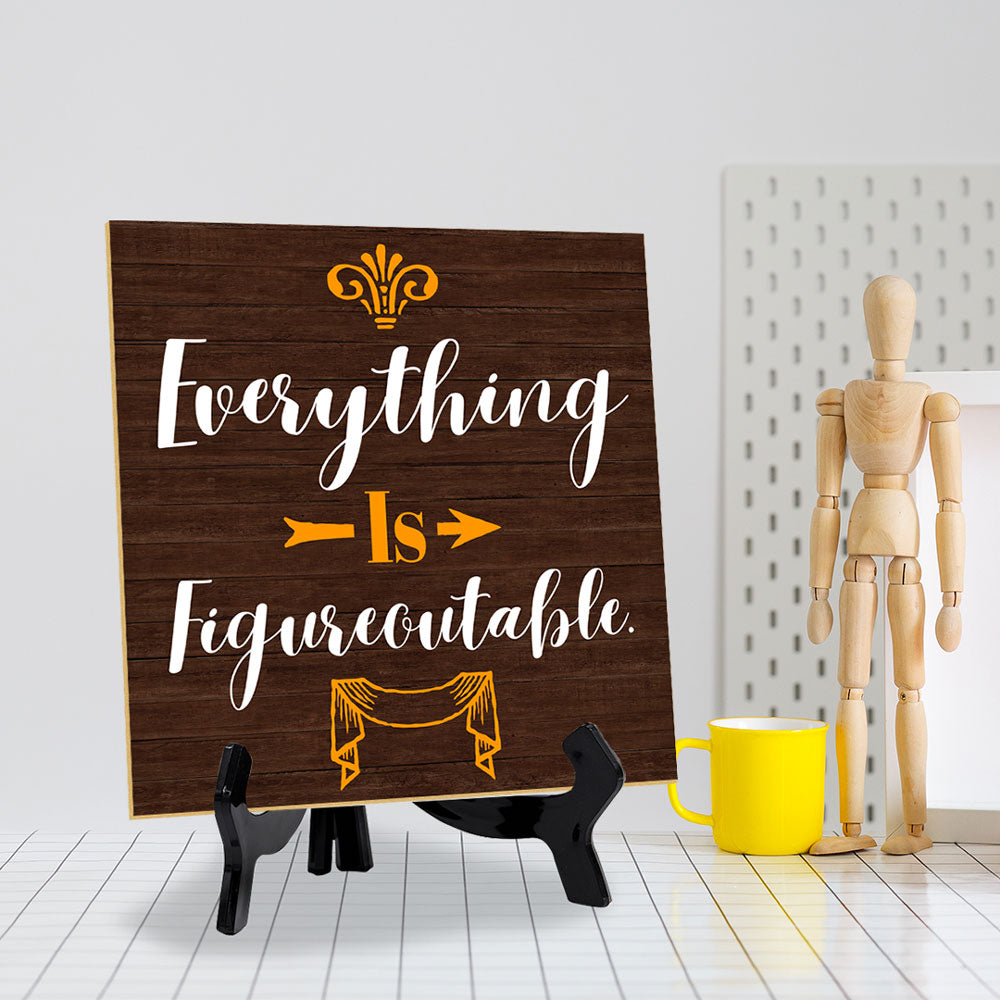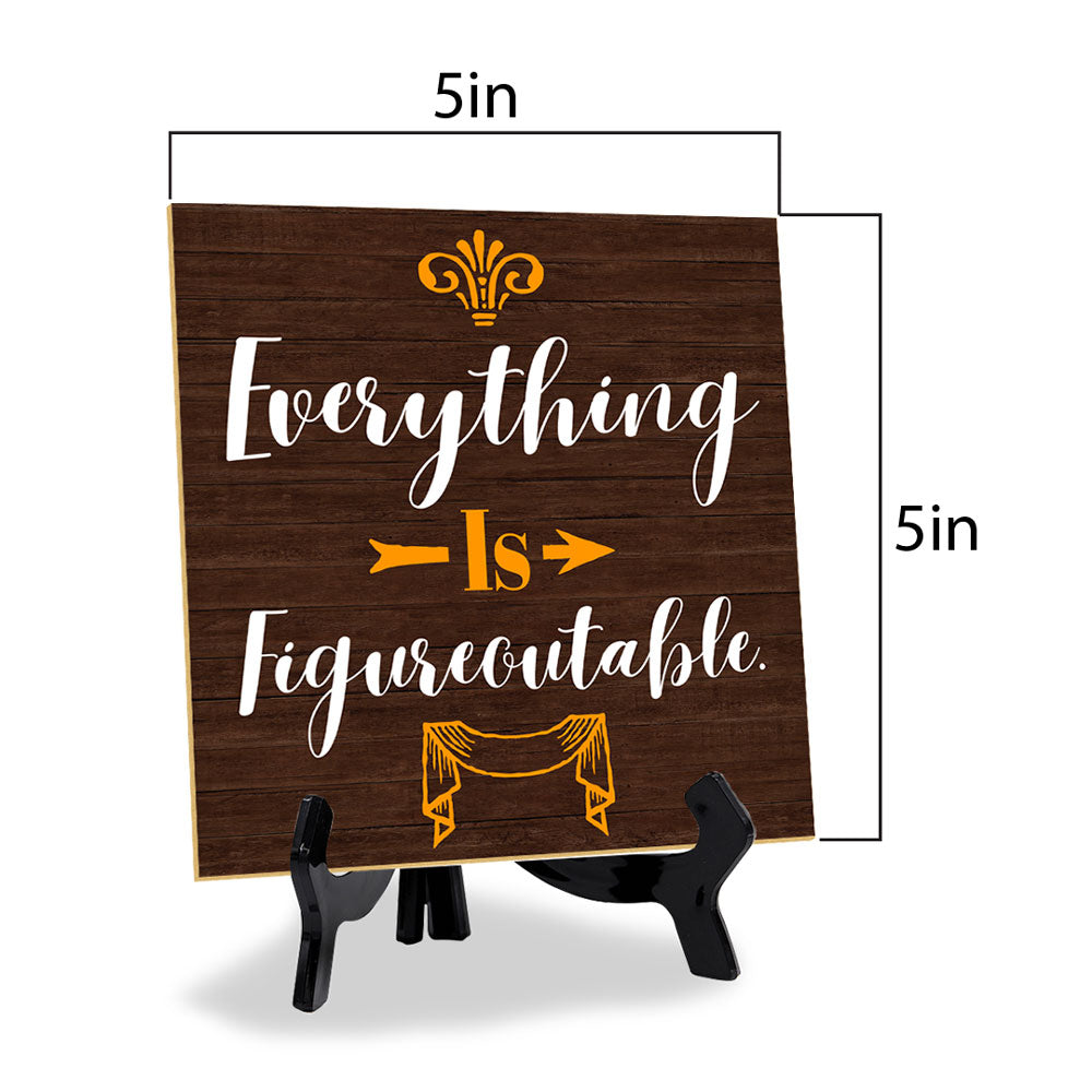 Everything Is Figureoutable. 5"x 5" Square Table Sign With Acrylic Easel