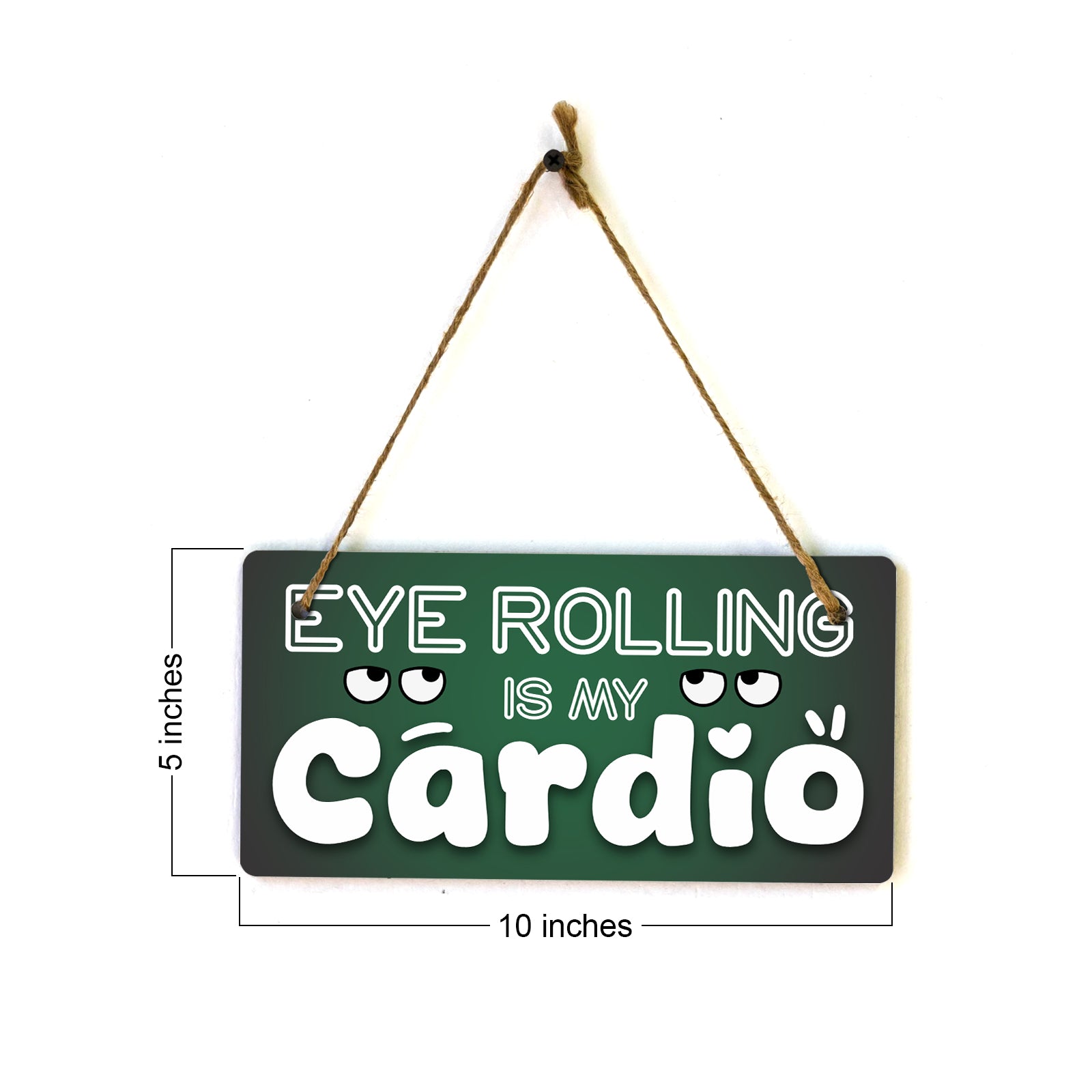 Introducing our versatile and stylish Eye Rolling Is My Cardio, the perfect blend of style and sophistication to elevate your home or workplace. Our 5x10 Hanging Sign range is the perfect choice for your home, workplace or business. Each sign is attached with rustic twine, providing a charming and versatile accent for any space. Our curated designs effortlessly complement a variety of styles, from rustic farmhouse or Modern Chic, to simple and functional options. Choose from our diverse range of designs to personalize your space. Whether it's a warm welcome at the entrance, a motivational quote for your workspace, or a playful touch for the kids' room, our Hanging Wall or Door Signs are the perfect way to express your unique style.