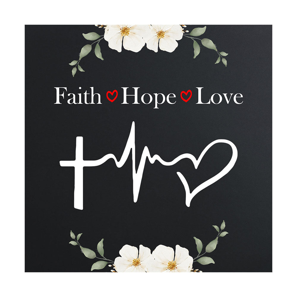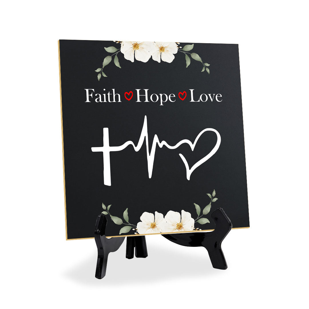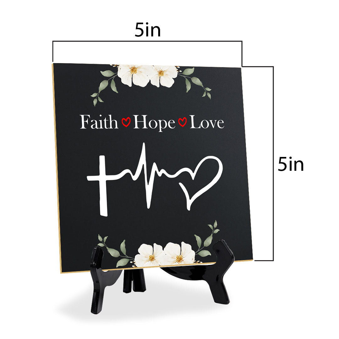 Faith Hope Love, 5x5 Square Table Sign. This table sign comes with it's own black acrylic easel, easy to set up and display on any flat surface.