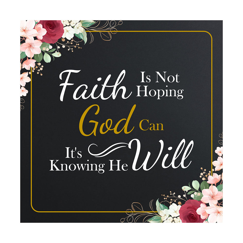 Faith Is Not Hoping God Can It's Knowing He Will 5"x 5" Square Table Sign With Acrylic Easel
