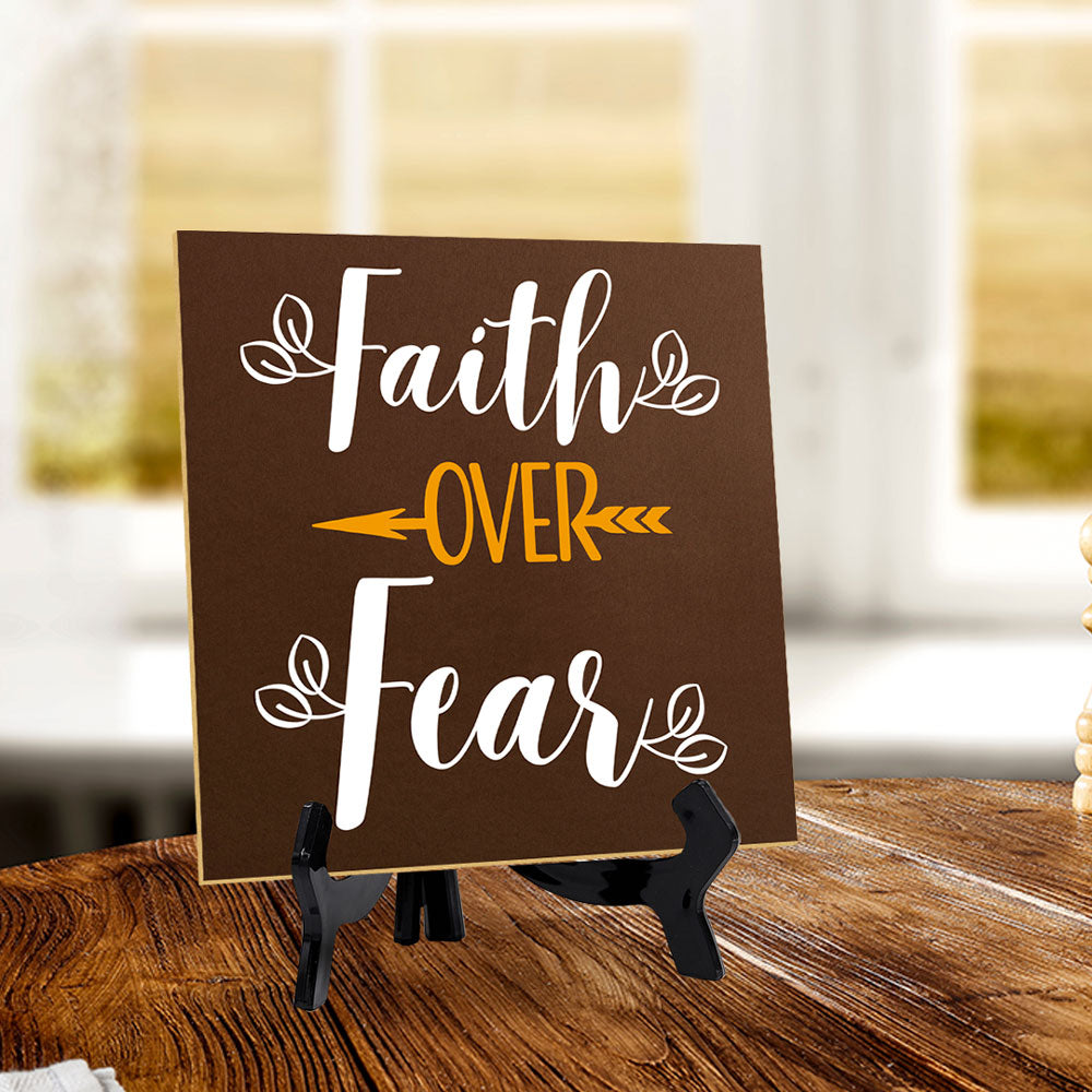 Faith Over Fear 5"x 5" Square Table Sign With Acrylic Easel