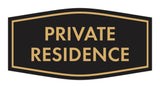 Our Fancy Private Residence Sign can be attached to the door, wall or window of your home or business. The sign text and design work is laser engraved into sturdy plastic. Each sign comes with an adhesive foam backing, allowing them to be attached to any flat surface. Comes in multiple colors. Our residential signs are great for your home or property .